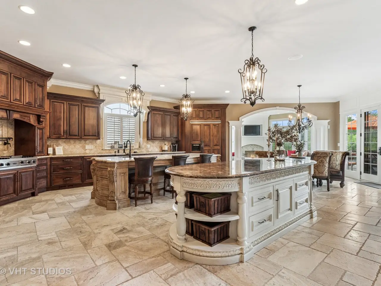 Welcome to 931 Lusted Lane - an extraordinary, custom-built estate in Batavia offering approx. 10,000 square feet of luxurious living and entertaining space on nearly an acre. This stunning seven bedroom, 6.2 bath home features a heated, oversized four-stall garage with built-in shelving, a Control 4 whole-house automation system, and a resort-style backyard complete with a 22 x 48-foot in-ground pool with slide, fountains, lighting, diving board, projection screen, hot tub, gas firepit, and built-in grill/bar. Inside, the chef's kitchen is a dream with Viking appliances, dual islands, granite countertops, natural travertine flooring, raised panel cabinetry with crown molding, a custom wet bar, and a butler's pantry. Elegance abounds throughout with five fireplaces (three gas, two wood-burning), a breathtaking two-story walnut staircase, walnut flooring and millwork, a formal dining room with deluxe wainscot and colonial embossed ceiling, and a family room with soaring ceilings, a gas fireplace with hand-crafted surround, and a built-in curio cabinet. The primary suite is a retreat with vaulted tray ceilings, a gas fireplace, built-in curved television, and a spa-like bath with a two-person shower with massage jets, a Jacuzzi tub, heated floors, dual vanities, stereo speakers, and a hidden TV behind the mirrors. The finished basement is a true showstopper with a custom granite bar, five-screen TV entertainment center with remote switching, a wine cellar, elevated TV room, cove ceiling over the pool table, wood-burning fireplace, surround sound theatre system, and storage room with shelving. Additional highlights include Anderson casement windows, Schlage locks, ADT security, mudroom, in-ground sprinkler system, cedar siding with Trex deck, and a new 40-year roof (2020). This exceptional home offers the ultimate in luxury, comfort, and entertaining-inside and out. Tanglewood Hills offers a spacious clubhouse with a commercial kitchen, large pool and a separate children's pool, in addition to basketball, pickleball, and tennis courts, playground, and scenic trails. Served by top-rated Batavia schools-with Grace McWayne elementary in the neighborhood. Minutes to Randall Road's dining and shopping, plus easy access to I-88 and Metra.