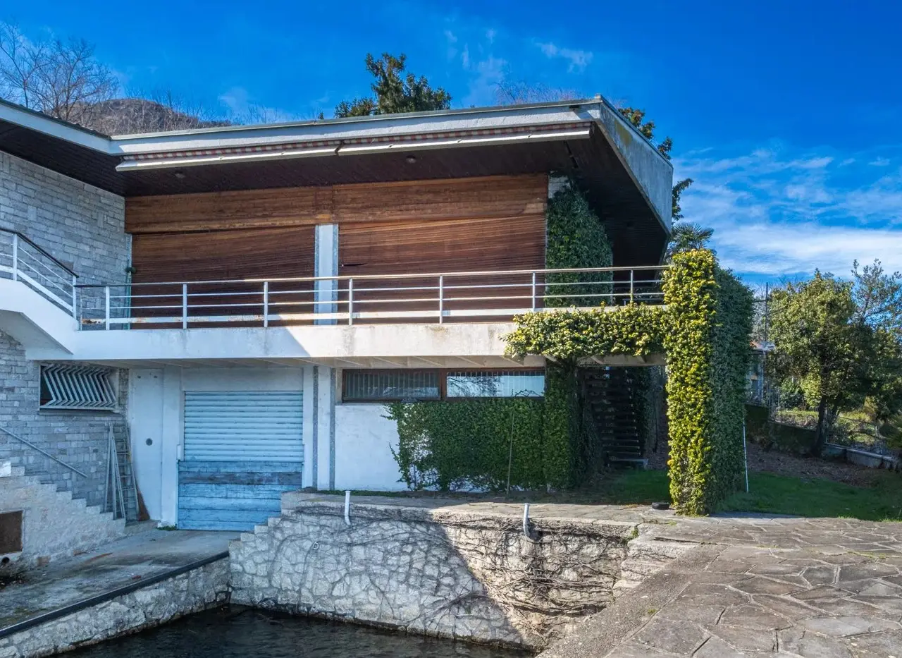 Modern villa from the 1950s for sale in Italy Baveno, pieds dans l'eau, directly on the Piedmontese shore of Lake Maggiore. This prestigious villa represents a unique opportunity for those who want an unrepeatable location, in one of the most beautiful areas of Lake Maggiore. From this position you can reach the sandy beaches of the Feriolo area with your own motorboat or sail around the Borromean islands. The construction dates back to the 1950s, designed by the architect Cracchi, and subsequently renovated in 1987 by the famous architect Luigi Caccia Dominioni. The villa is surrounded by a garden of over 1,000 square metres, planted with lush plants typical of Lake Maggiore, which give wonderful flowering. The villa is on two floors, with a surface area of 350 m2, this prestigious villa offers large spaces, divided very rationally. The large terraces on several levels allow you to enjoy the villa outdoors during the summer. Inserted in an exceptional landscape panorama, with a breathtaking view of Lake Maggiore and the surrounding mountains, the villa is surrounded by a well-kept garden, making it a true oasis of peace and serenity in the open air. This purchase opportunity is the ideal solution for those who have a motorboat, in fact the villa has a dock. Next door you can use the beach. Internally, the salient feature is the large windows in the living room which offer a broad view of Lake Maggiore. The living room with fireplace is equipped with a fireplace. Continuing there is the large kitchen, two bedrooms and two. Downstairs there are two more bedrooms with two bathrooms and a laundry room. In addition to the dock, the basement floor houses the boiler room and cellars. Access to the dock by motorboat is via a pier. There are four covered parking spaces as well as the possibility of parking other cars. Unique property of its kind, ideal for those seeking privacy, those who want free access with their own boat to the wonders of Lake Maggiore and the Borromeo Gulf. Property in need of renovation works.