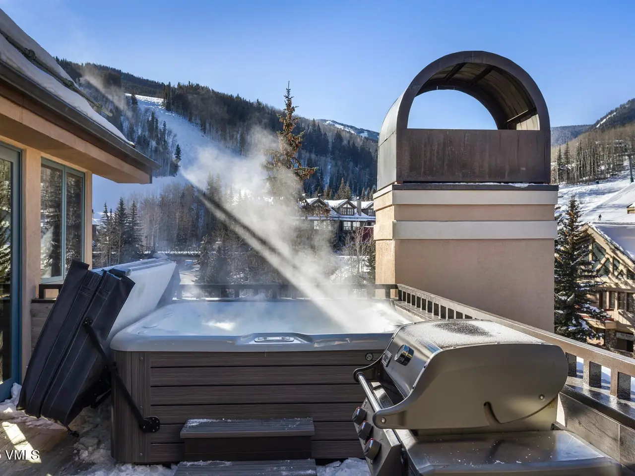 • Private patio with hot tub and mountain views