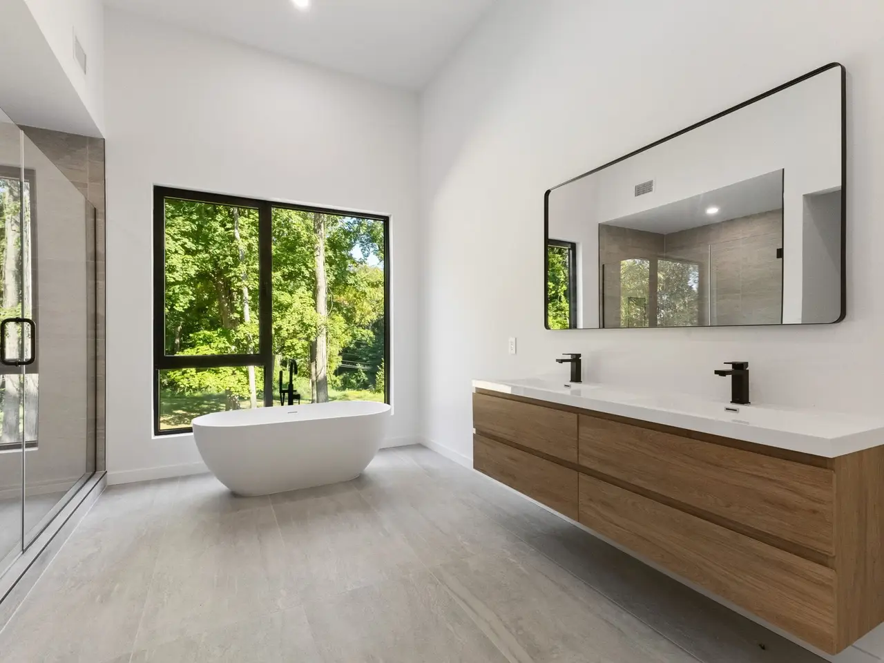 Welcome to 28 McLain, Bedford Corners NY - a modern villa set on over two acres of private, level land at the end of a serene cul de sac. Prestigious Bedford Corners community presents an exceptional lifestyle with access to renowned public and private schools, curated boutique shopping and a vibrant culinary scene unlike any other. Designed for both grand entertaining and intimate gatherings, this modern villa offers a seamless flow of open living spaces defined by soaring ceilings, walls of glass, and an effortless indoor-outdoor connection. Sun-drenched interiors create a vibrant yet sophisticated ambiance, while multiple lounge areas, a gourmet chef's kitchen and expansive terraces set the stage for unforgettable entertaining. Exquisite bedroom suites showcase soaring floor-to-ceiling windows, indulgent spa-like private baths and spacious walk in closets designed for the most discerning lifestyle. Every detail is curated to balance elegance with comfort, making the home equally suited for lively celebrations and serene everyday living. Creating an air tight thermal envelop around a home keeps the home high-performing and energy efficient. By paying close attention to ventilation and the flows of air, heat and moisture, this construction will keep the home free from mold, toxins and allergens. Conveniently just minutes from downtown Mt Kisco and Bedford Village, with its charming shops and restaurants, and offering an easy commute to New York City.