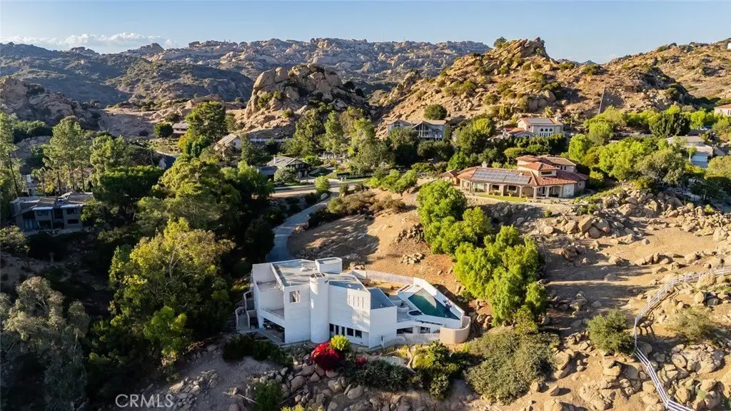 Renowned architect Louis Kahn once said, “Architecture is the thoughtful making of space.” Nowhere is that sentiment more perfectly realized than at 120 Stagecoach—a striking architectural residence nestled on over an acre of secluded, natural beauty in a prestigious guard-gated community Thoughtfully designed and masterfully executed, this 4-bedroom, 3-bathroom home offers 2,816 sq ft of living space on a 55,321 sq ft lot, showcasing extraordinary architectural detailing throughout. From the moment you arrive via a long private drive, you're enveloped in a tranquil atmosphere where the home harmonizes seamlessly with its natural surroundings. Inside, the dramatic great room impresses with soaring ceilings, a centerpiece fireplace, and walls of glass that frame serene outdoor views—blurring the lines between indoors and out. The chef’s kitchen is both stylish and efficient, featuring ample storage and a modern layout that opens to a semi-formal dining area overlooking the home’s unique pool and cascading water features. The primary suite occupies its own private upper level, complete with a separate study, walk-in closet, and a spacious viewing deck—ideal for morning coffee or sunset reflection. The three secondary bedrooms are located in a separate wing, each thoughtfully designed with built-ins and functional elegance. Outside, the expansive grounds are a natural sanctuary with incredible boulder formations, multiple viewing decks, water features, and a one-of-a-kind pool and spa—creating a resort-like ambiance perfect for relaxation or entertaining. A 3-car garage completes this exceptional offering. The Bell Canyon community amenities compliment this amazing home which include Twenty four hour guard gated entry, Residents-only park, Miles of maintained trails, A community Equestrian center, Direct trail access to the Santa Monica Nature preserve, Community tennis courts, Residents gym, Organized adult and children’s events throughout the year, Award winning Las Virgenes school district with school bus service to the community, and just minutes to freeways, beaches and some of LA’s best shopping and dining locations.