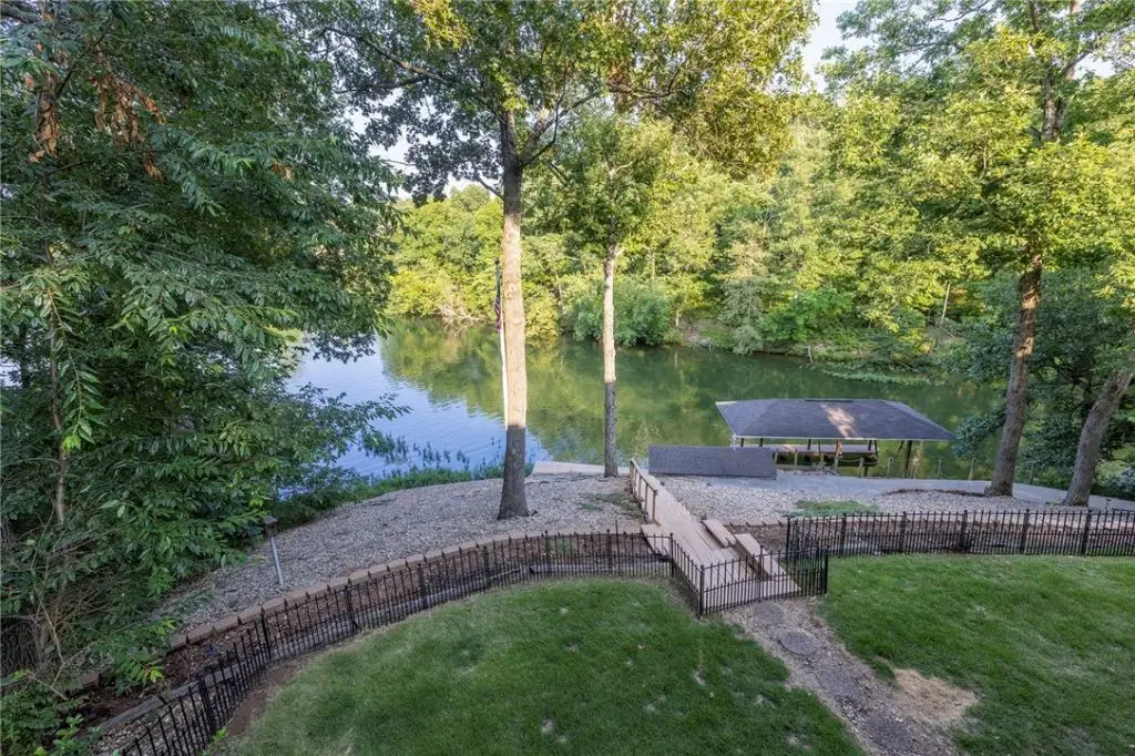Park-Like, Secluded Lake-Front Living! 1.66 double lot with killer views and a private dock and covered boat lift. The oversized kitchen features granite counters, a double oven, gas cooktop, coffee station and massive amounts of storage. Throughout the upstairs, enjoy expansive lake views with 3 double doors accessing the deck and screened in porch. The upper living area has a propane fireplace while the lower level has a wood burning fireplace. In the primary bedroom + bath you'll find a private deck area, two walk-in closets, gorgeous marble double vanity, soaking tub, tiled shower and another walk-in closet. The laundry room has a sink with granite counters and even MORE storage. Downstairs you'll find 2 bedrooms, one full bath, and another living room/game room - the pool table conveys- and a wet bar to entertain your guests! Ice machine, sink + mini fridge in the downstairs bar convey as well. Brand new HVAC system in Jan 2024, Hot Water Tank 2019. New dishwasher in 2025. Lower level shop area + so much more!