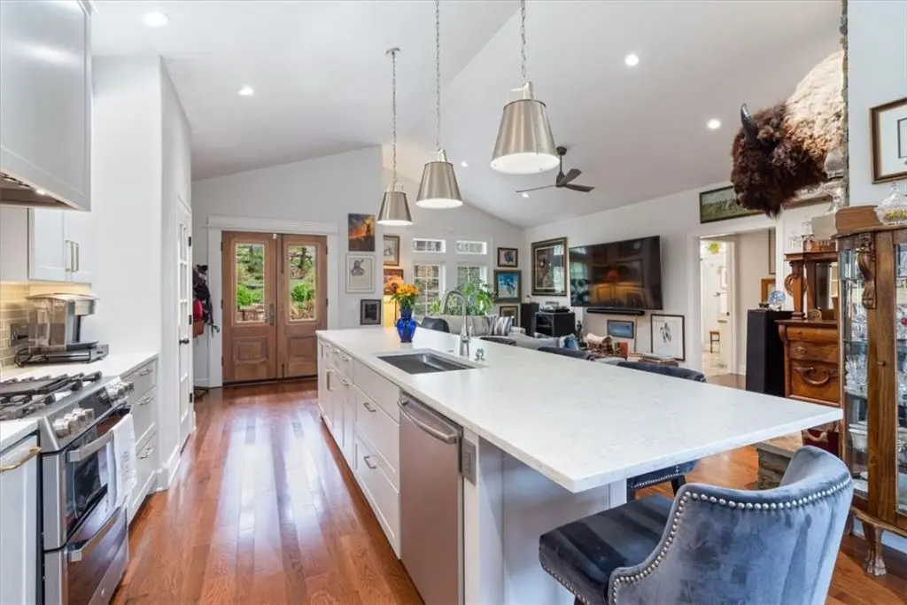 Imagine a home perfectly placed to take advantage of the sunrise and sunset from the 41 foot screened porch! This lakefront oasis built in 2010 is the definition of tranquility! The professionally landscaped front yard leads you to this impeccable Lake Ann home. The current owners facilitated a complete kitchen remodel, from the large island, to the quartz countertops, new lighting, to all new cabinetry. Stainless appliances, including a gas stove and a walk in pantry. The kitchen area is open to the living room and features a newly redesigned fireplace with stone surround. Separate formal dining space with built in cabinetry. Off the kitchen is a flex space that could be used for future access stairs to take advantage of the lower level unfinished space. The wood flooring extends thru the home into the primary suite. Two guest bedrooms, one with a private deck. Lower deck with steps to the water. Stone seawall. New interior paint. Updated lighting. An exceptional lakefront home!