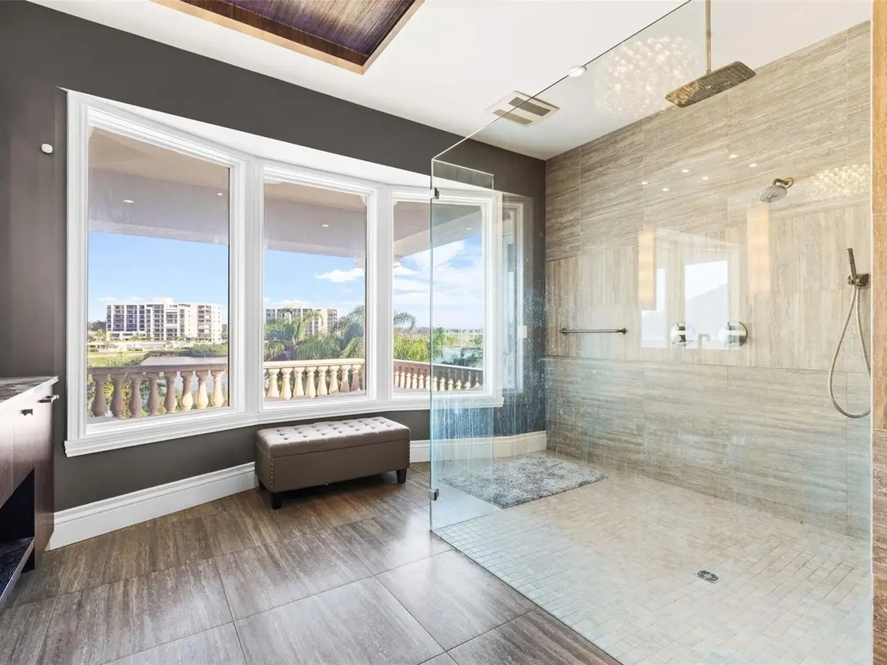 Experience an extraordinary expression of island elegance in this exquisite waterfront residence, nestled within Pinellas County’s most exclusive gated community. Home to fewer than 30 fortunate residents, Belleview Island offers a serene escape that combines unparalleled security, privacy, and breathtaking water views. A short stroll away lies the renowned Belleair Country Club—featuring two 18-hole Donald Ross-designed golf courses, Har-Tru tennis courts, pickleball courts and a junior Olympic-sized swimming pool. The ideal spot for boating enthusiasts, this premier waterfront location provides swift access to Clearwater Pass and the open Gulf waters. Marvel at panoramic water views that serve as the backdrop for the home’s timeless design, exemplifying understated elegance and open-concept living. From the moment you step into the grand foyer, you’ll be captivated by soaring ceilings that elevate every gathering. The gourmet kitchen, outfitted with striking quartz countertops and stainless-steel appliances, accommodates both formal and informal dining with abundant seating. Completing this level are a spacious family room, a formal dining room, and an executive home office—perfect for those who blend luxury living with professional pursuits. Ascend the marble staircase, or opt for the private elevator to reach the lavish primary suite, which boasts a spa-inspired bathroom, a generous walk-in closet, and two balconies overlooking the backyard. An adjoining 14' x 20' room allows flexibility for a nursery, second study, or home gym, catering to your evolving needs. Step outside to one of several balconies, ideal for savoring morning coffee or al fresco dining against a backdrop of idyllic water vistas. The show-stopping 60' x 28' pool is arguably the largest on Belleview Island, offering endless fun in the Florida sun, while a private dock equipped with lifts for two vessels ensures seamless access to your water adventures. This magnificent home is custom tailored for those seeking both refined entertaining spaces and a serene retreat, where every aspect is designed to fulfill the demands of a discerning lifestyle.