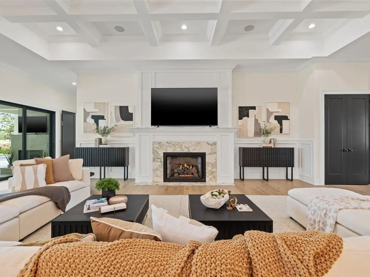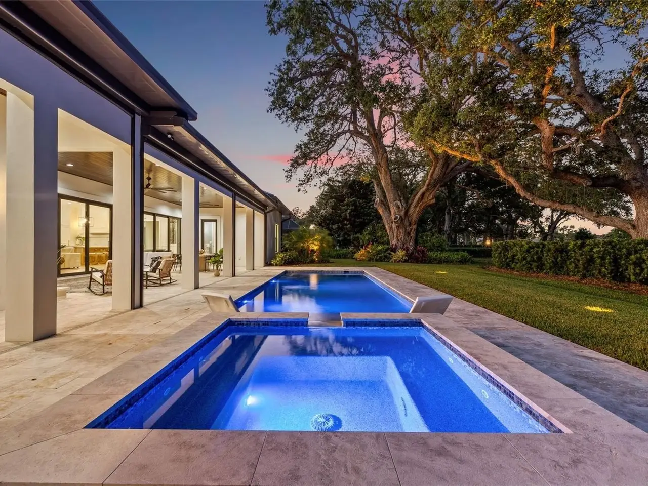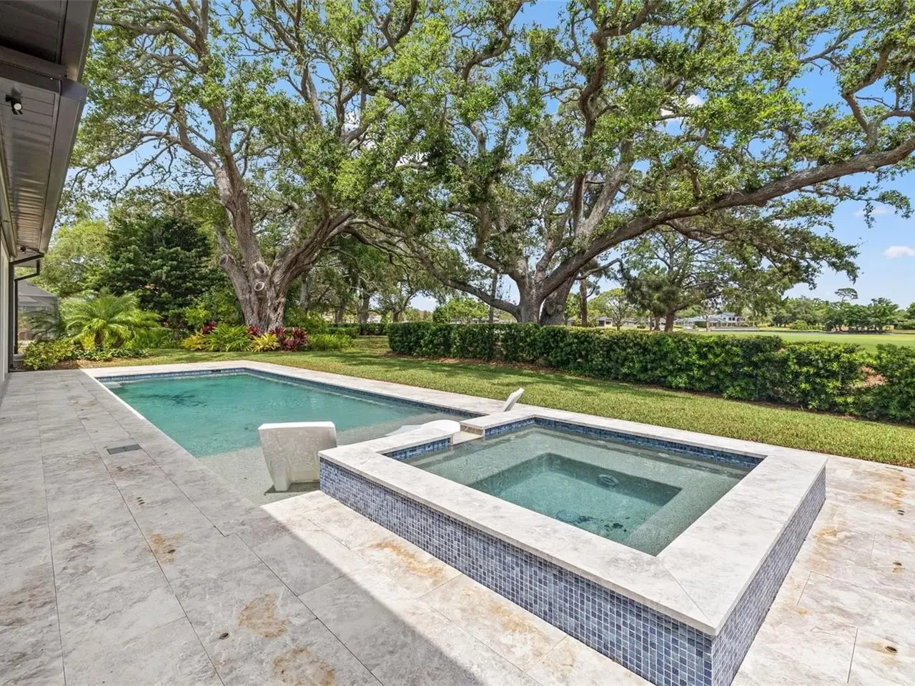 Move straight into an untouched masterpiece overlooking the 5th fairway of the prestigious Pelican Golf Club, widely regarded as Pinellas County’s finest private course. Completed in 2025 and never occupied, this executive residence pairs crisp modern architecture with warm, livable spaces, creating an ideal setting for everyday comfort, grand entertaining, and multigenerational living. A dramatic great room welcomes you with oak floors, 14-foot coffered ceilings, and an entire wall of glass that frames manicured fairways and bathes the interior in natural light. The adjacent chef’s kitchen is a true showpiece, anchored by dual center islands, bespoke cabinetry, dramatic marble countertops, Kraus workstation sinks, Waterworks fixtures, and professional-grade appliances that are equally suited to casual breakfasts or catered soirées, while the open dining and living areas flow seamlessly to the outdoors through hurricane-rated sliders. The primary suite is a private sanctuary with two generous walk-in closets and a spa-inspired bath featuring dual oversized rain shower heads, a deep soaking tub, and dual vanities with a dedicated cosmetics station. A split-bedroom layout ensures privacy for family and guests, and a versatile bonus room can serve as an executive study, formal dining room, or fifth bedroom. Everyday convenience is elevated by two full sets of washers and dryers in the interior laundry room, and climate-controlled storage in the oversized two-car garage; a separate air-conditioned single garage, about 375 square feet, that can easily accommodate a third vehicle or golf cart. Outback, resort living awaits: a salt-water pool and spa, motorized retractable screens, and a gas fireplace create an effortless venue for sunset cocktails beside the fairway. A 26kW whole-house generator, concrete-block construction, impact glass, and high-efficiency HVAC deliver peace of mind and low operating costs. Minutes from Clearwater’s beaches, marinas, and dining—yet worlds away in privacy and prestige, this brand-new residence offers flawless finishes, cutting-edge systems, and an unrivaled golf-course backdrop. Virtual tour and floor plans are available upon request.