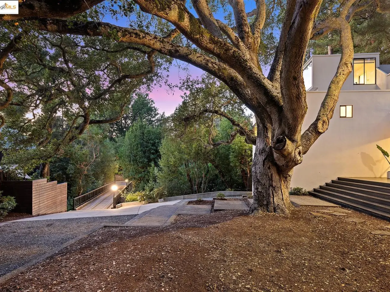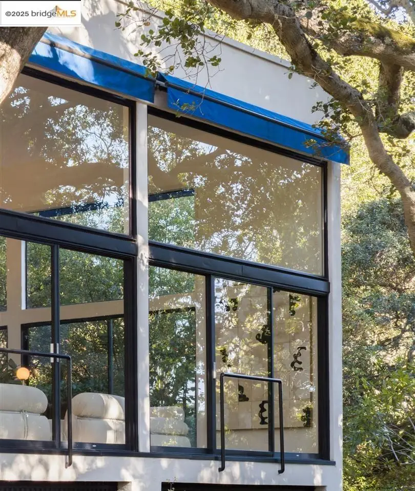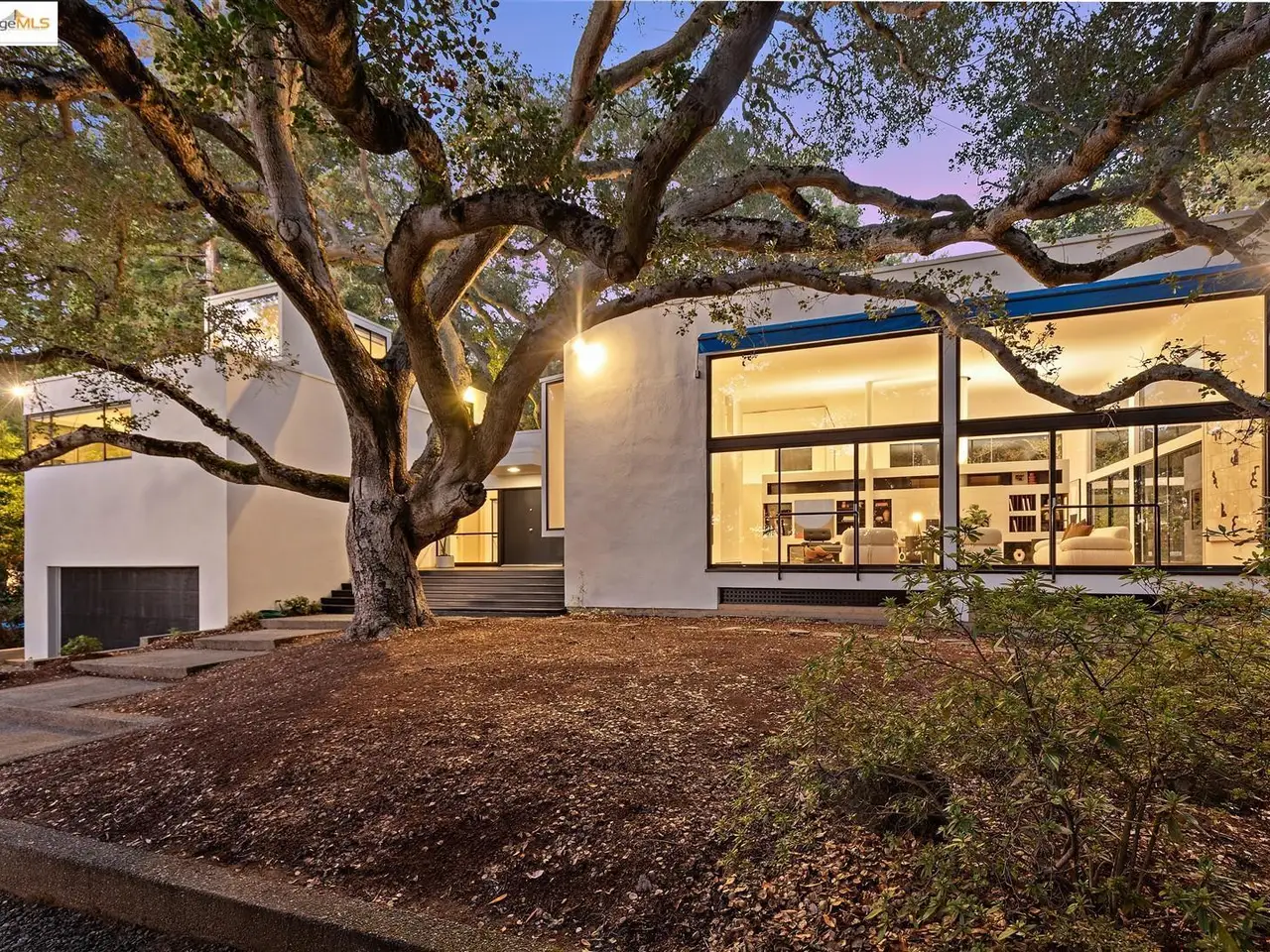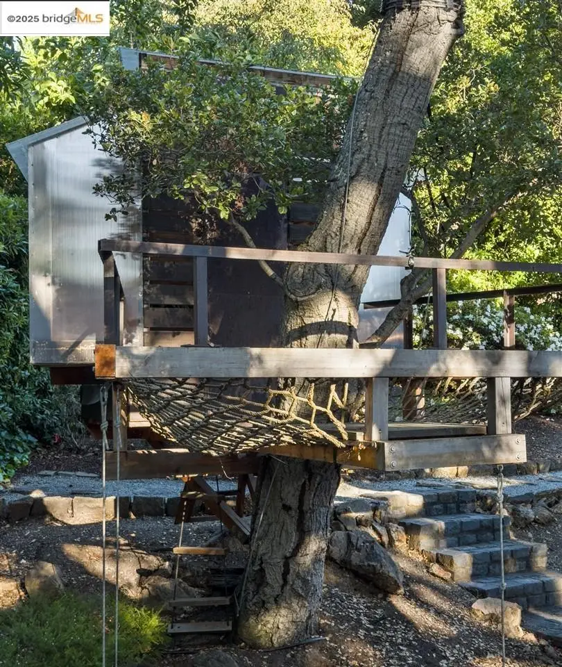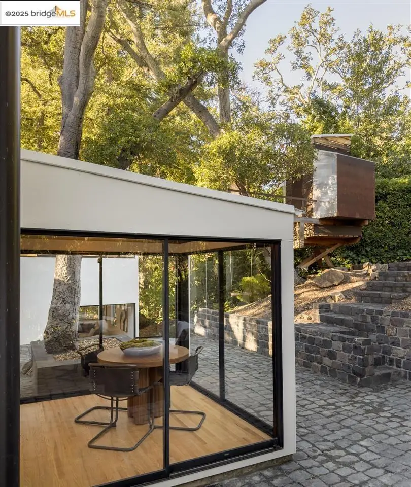 Architectural legacy meets California tranquility in this AIA-recognized residence by acclaimed architect Donald Olsen. Built in 1967 for his close friend David Ruth, this mid-century modern architecture includes a friendly floorplan with 4 bedrooms and 3 full baths, showcasing Olsen's signature integration of geometry, light, and nature. Built on a secluded knoll-lot of approximately 0.38 acres around a magnificent heritage coastal live oak and perched above a serene creek, the home captures the essence of Berkeley's architectural and natural beauty. Thoughtfully preserved and meticulously improved, the property features walls of glass, original hardwood floors, seismic upgrades, landscape renovations by RDG Landscape Architects including a full native-plant and creek restoration, illuminated walkways, and the exterior patio is embossed with San Francisco cobblestones. A custom O2 Treehouse floats among the oaks, adding playfulness to the refined design. Set in the prestigious Claremont neighborhood, this property offers ADU or multi-generational potential and effortless access to the Claremont Club & Spa, Rockridge BART, and freeway access.