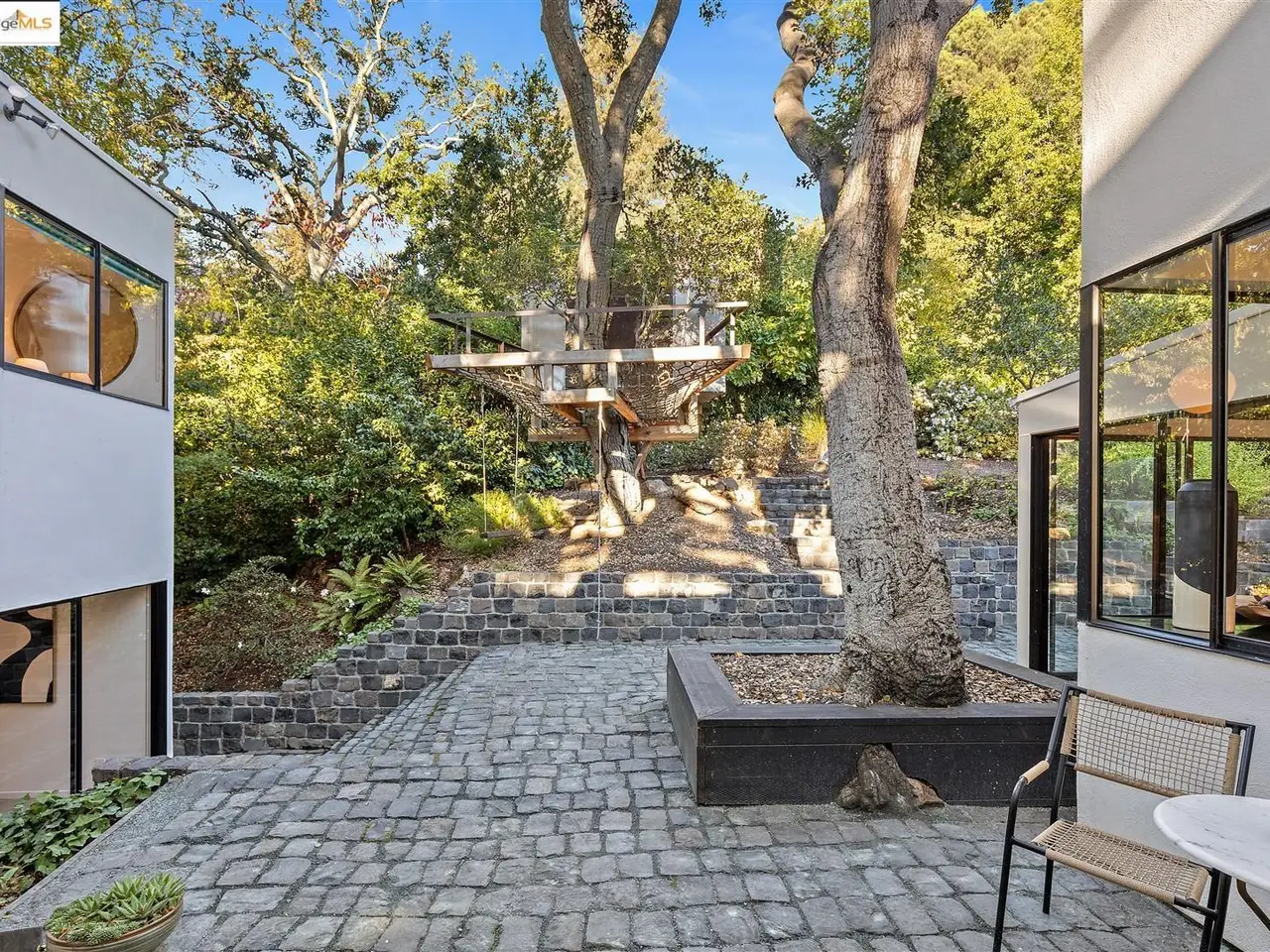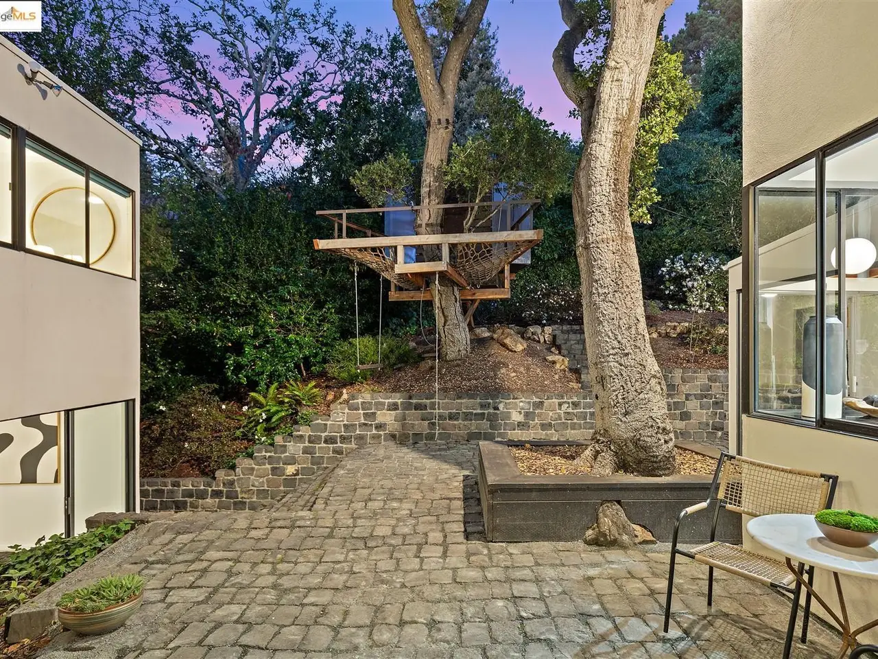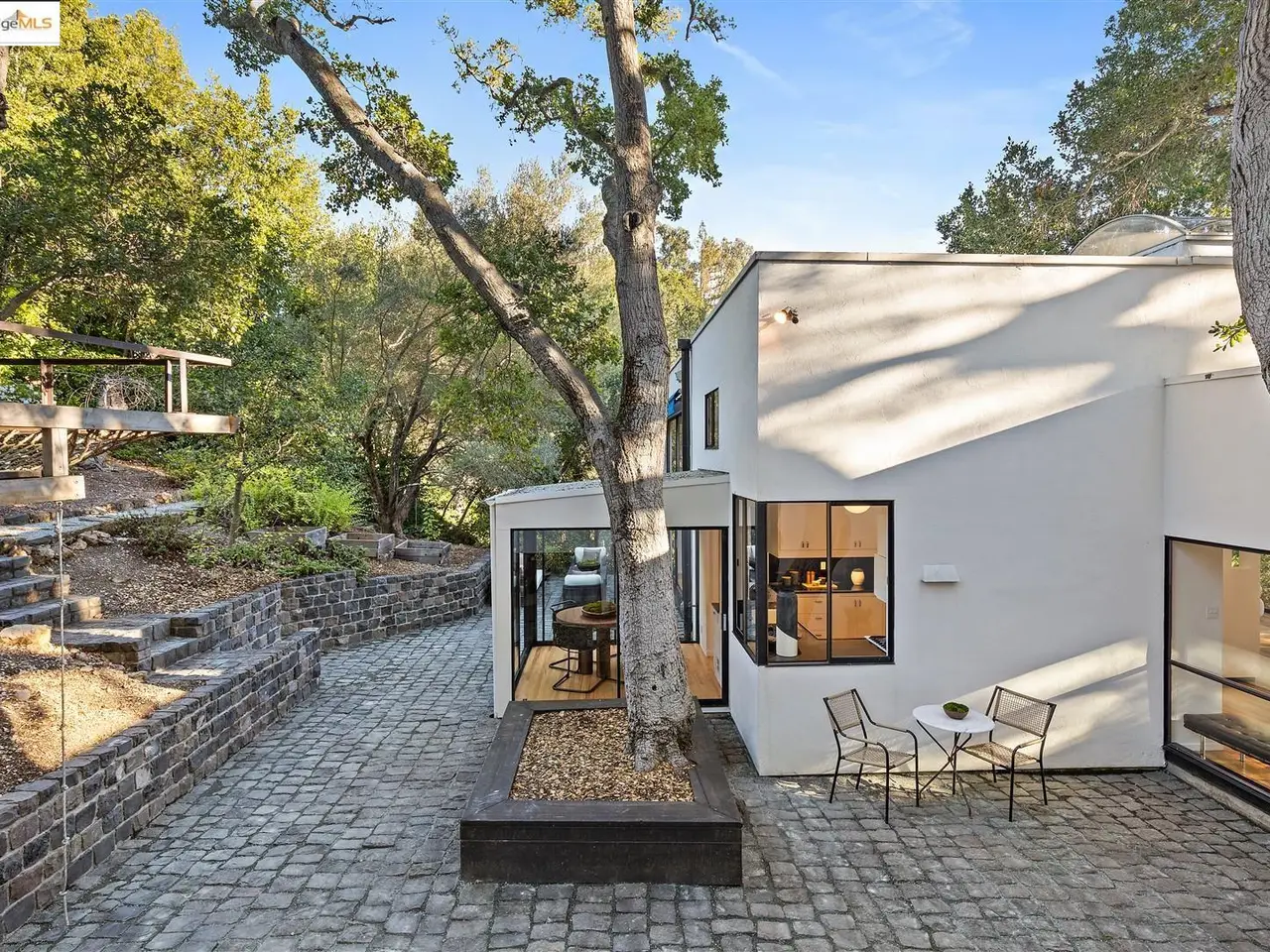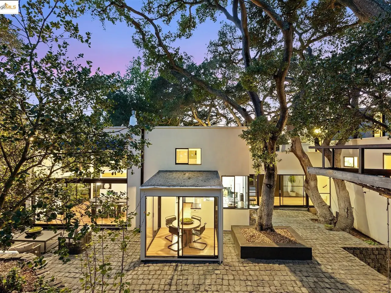 Architectural legacy meets California tranquility in this AIA-recognized residence by acclaimed architect Donald Olsen. Built in 1967 for his close friend David Ruth, this mid-century modern architecture includes a friendly floorplan with 4 bedrooms and 3 full baths, showcasing Olsen's signature integration of geometry, light, and nature. Built on a secluded knoll-lot of approximately 0.38 acres around a magnificent heritage coastal live oak and perched above a serene creek, the home captures the essence of Berkeley's architectural and natural beauty. Thoughtfully preserved and meticulously improved, the property features walls of glass, original hardwood floors, seismic upgrades, landscape renovations by RDG Landscape Architects including a full native-plant and creek restoration, illuminated walkways, and the exterior patio is embossed with San Francisco cobblestones. A custom O2 Treehouse floats among the oaks, adding playfulness to the refined design. Set in the prestigious Claremont neighborhood, this property offers ADU or multi-generational potential and effortless access to the Claremont Club & Spa, Rockridge BART, and freeway access.