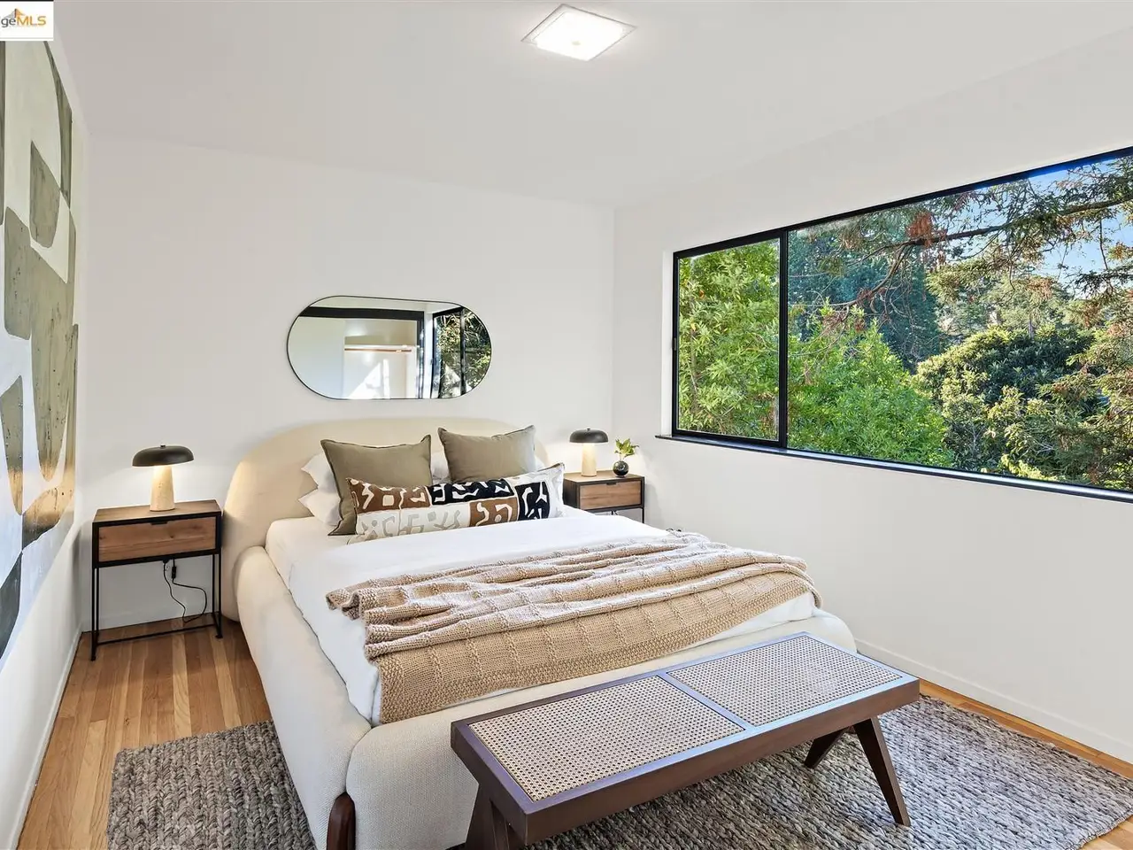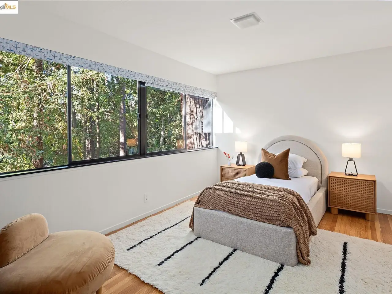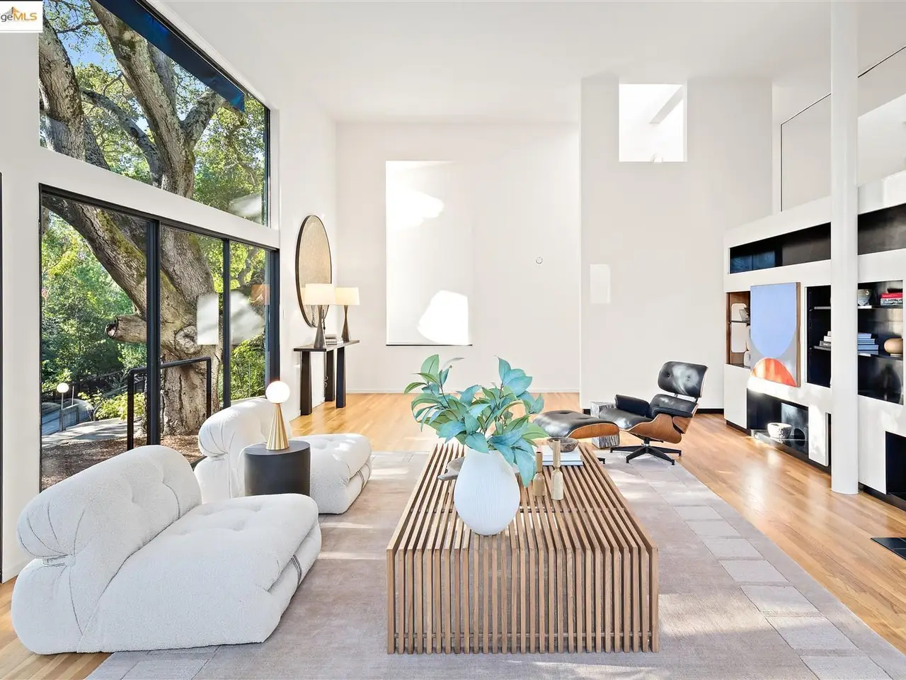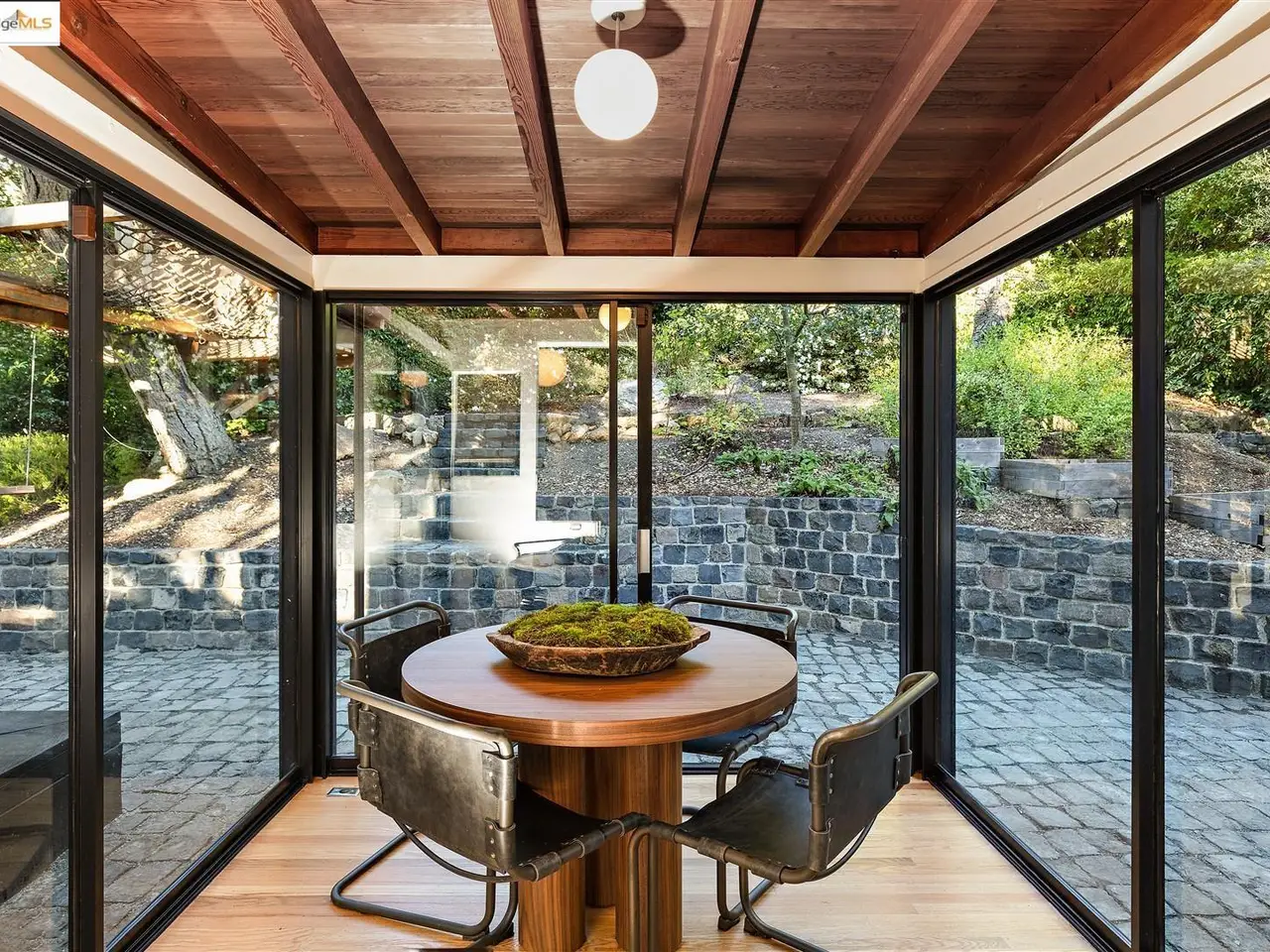 Architectural legacy meets California tranquility in this AIA-recognized residence by acclaimed architect Donald Olsen. Built in 1967 for his close friend David Ruth, this mid-century modern architecture includes a friendly floorplan with 4 bedrooms and 3 full baths, showcasing Olsen's signature integration of geometry, light, and nature. Built on a secluded knoll-lot of approximately 0.38 acres around a magnificent heritage coastal live oak and perched above a serene creek, the home captures the essence of Berkeley's architectural and natural beauty. Thoughtfully preserved and meticulously improved, the property features walls of glass, original hardwood floors, seismic upgrades, landscape renovations by RDG Landscape Architects including a full native-plant and creek restoration, illuminated walkways, and the exterior patio is embossed with San Francisco cobblestones. A custom O2 Treehouse floats among the oaks, adding playfulness to the refined design. Set in the prestigious Claremont neighborhood, this property offers ADU or multi-generational potential and effortless access to the Claremont Club & Spa, Rockridge BART, and freeway access.