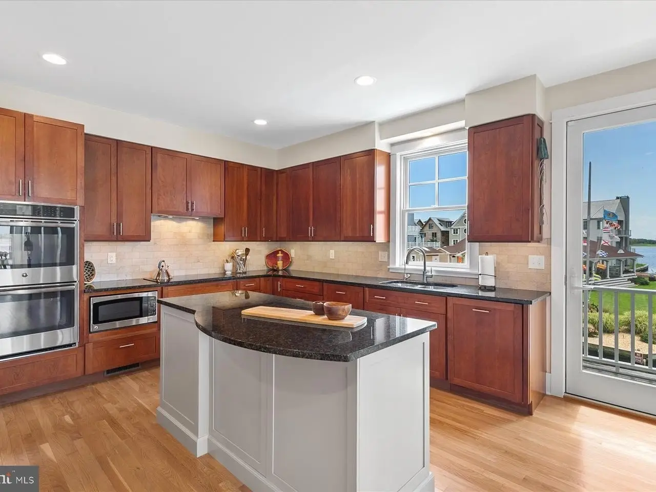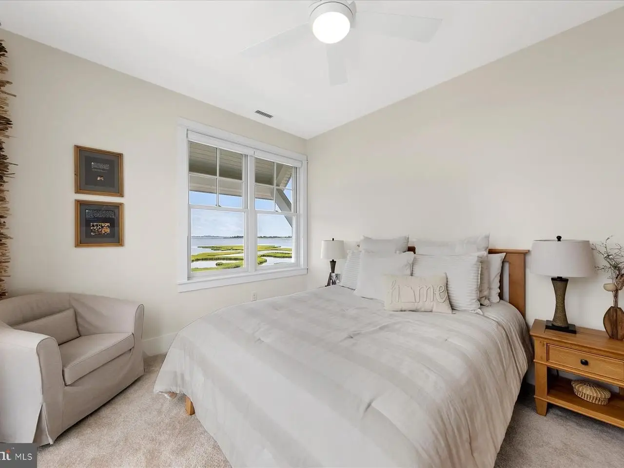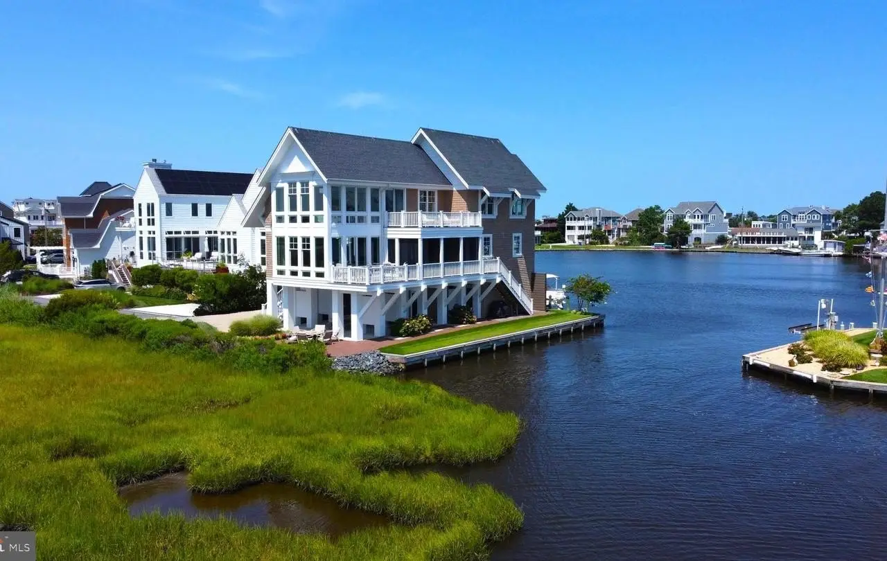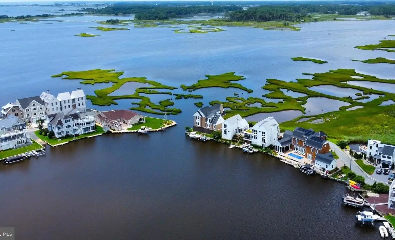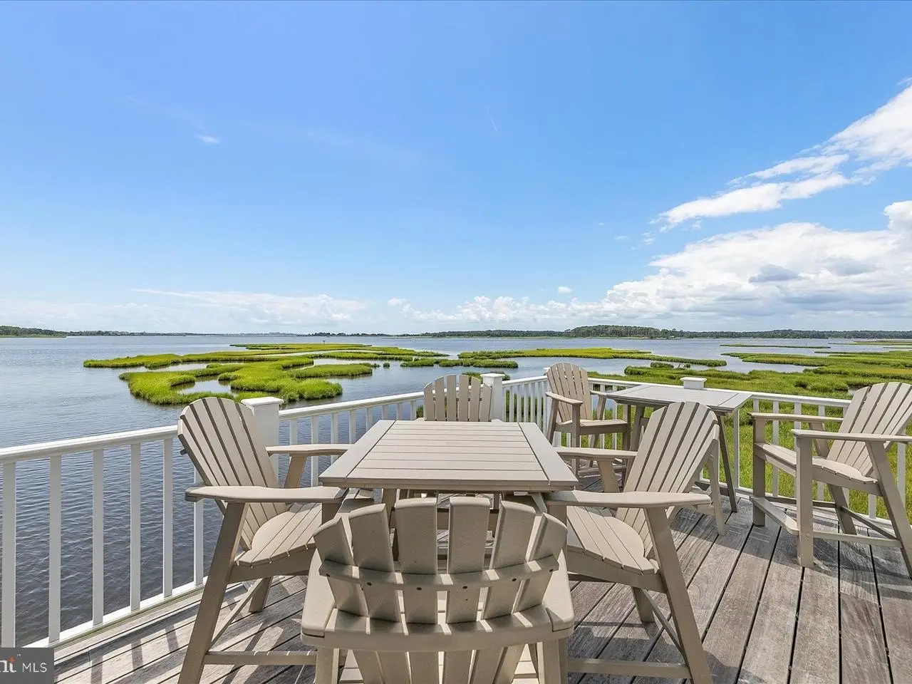 Take in unparalleled panoramic bay views from every room of this sophisticated modern beach home, ideally located on one of the most sought-after bayfront properties with water on three sides of the home. Complete with a private 50-foot dock, boat lift, and double jet ski lift, this exceptional residence was impressively designed, featuring high-end finishes and craftsmanship throughout. The expansive great room, with floor-to-ceiling windows on two sides, effortlessly frames sweeping views of the water and seamlessly blends the living, dining, and gourmet kitchen spaces. A large work island, bar with seating, and premium appliances elevate this culinary and entertaining space with easy access to a screened porch and open deck with views that are unable to be duplicated. The main level also offers a cozy family room, two guest bedrooms, and a full bathroom, along with a convenient powder room for guests. Upstairs, the bayfront primary suite is a tranquil retreat with its own private waterfront deck. Three generously-sized guest rooms each feature en-suite bathrooms, ensuring ample space and privacy for visitors. On the ground level, a spacious workshop and covered patio provide the perfect setting for crab feasts and relaxation, while the brick paver patio offers an ideal spot for evening bonfires by the water. The outdoor shower with a changing area makes clean-ups after a day on the beach or boat a breeze, and a two-car garage plus second one-car garage provide ample storage and convenience for all your vehicles, beach gear, kayaks, canoes, boating accessories, and bikes. Additional highlights include an elevator shaft for future conversion, geothermal hvac, and a location that's impossible to duplicate-situated on a peninsula with sweeping views of the bay and wetlands, yet just moments from the beach. Homes of this caliber, in such a prime location, are a rare offering.