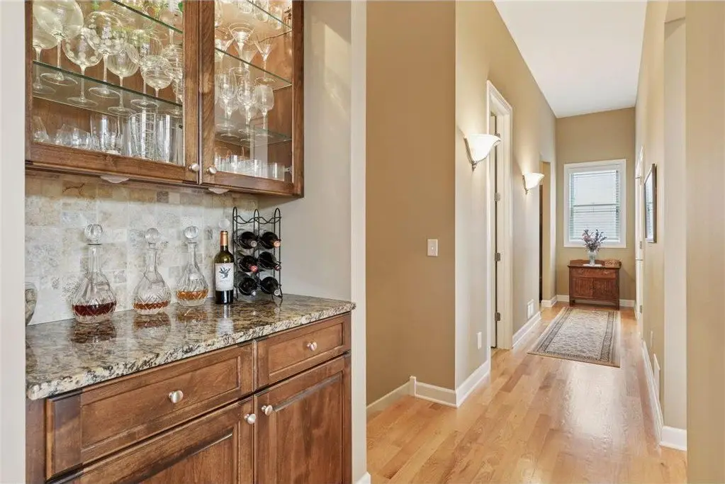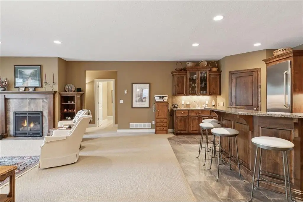 Beautiful Executive Rambler in the sought after location of Aspen Bay in The Lakes of Radisson! This stunning home features High End Finishes including 11' ceilings throughout the main level with Bold Enameled Millwork, Gleaming Hardwood Flooring, Great Lighting, a Chef's Kitchen with Custom Gourmet Built-In Appliances, Huge Center Island, Walk-In Pantry, Informal Dining & A Grilling Deck. The Great Room complete with Fireplace & Entertainment Center overlooks the very private setting and Nature Pond. Formal Dining for your parties and a Private Study for your Home Office. Main Floor Laundry and Spacious Main Floor Primary Suite which walks out to a comfortable deck overlooking the Pond & complete with Custom Walk-In Closets and an Elegant Private Bathroom. You will love the Lower-Level Family Room including the Fireplace & Entertainment Center which walks out to the Private Patio & Featured Outdoor Kitchen for your absolute private setting or Reside in the 4 Season Porch. The Complete Wet Bar with Dishwasher & Refrigerator including the Wine Room is perfect for entertaining your friends. The Lower level also includes 2 other Bathrooms and 3 Bedrooms (one of which is currently used as the Exercise Room. The Storage Room is Huge and perfect for all your Seasonal Storage. The Homes Exterior is Sided with LP Smart Siding & Tastefully accented with Stone Finishes. Enjoy the Covered Front Porch overlooking the manicured lawn, Crafted Paver Walkway & Driveway. Perfect in The Lakes of Radisson!