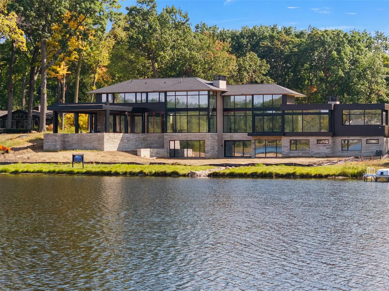 A showcase of modern design, this extraordinary residence was created by renowned AZD Architects and meticulously built by Johnson Custom Homes. Offering a rare blend of sophistication, comfort, and elegance, with serene Orange Lake views, this property combines inspired architecture with impeccable craftsmanship. Every space has been intentionally designed. The main level primary suite is a true sanctuary, complete with a spa-like bathroom, dual walk-in closets, a dramatic two-sided fireplace, and a luxurious soaking tub. A concealed drop-down theater screen and full surround sound transform the bedroom into a private cinema. Upstairs, three spacious en suite bedrooms offer stylish accommodations for family or guests. A private office with its own outdoor terrace provides an ideal setting for focused work or quiet study. At the heart of the residence is a bright, open concept living area anchored by a custom formed fireplace. The chef's kitchen opens to an expansive patio, and a discreet prep kitchen adds functionality for effortless entertaining. Every detail, from the thoughtful layout to the curated materials, reflects an elevated approach to modern living. This is more than just a residence; it's a statement of design excellence set in a tranquil location. Professionally landscaped by Matt Mosher and thoughtfully designed interiors by Sharon Kory create a cohesive and luxurious living experience. This exceptional home is a must-see to fully appreciate. Additional notes: Oversized four car garage with multiple 220 outlets and ample room for car lifts. Please see spec sheet attached to this listing. Renderings are conceptual; the home does not include a pool or entry gate. However, final grading, irrigation, and sod are included in the sale.
