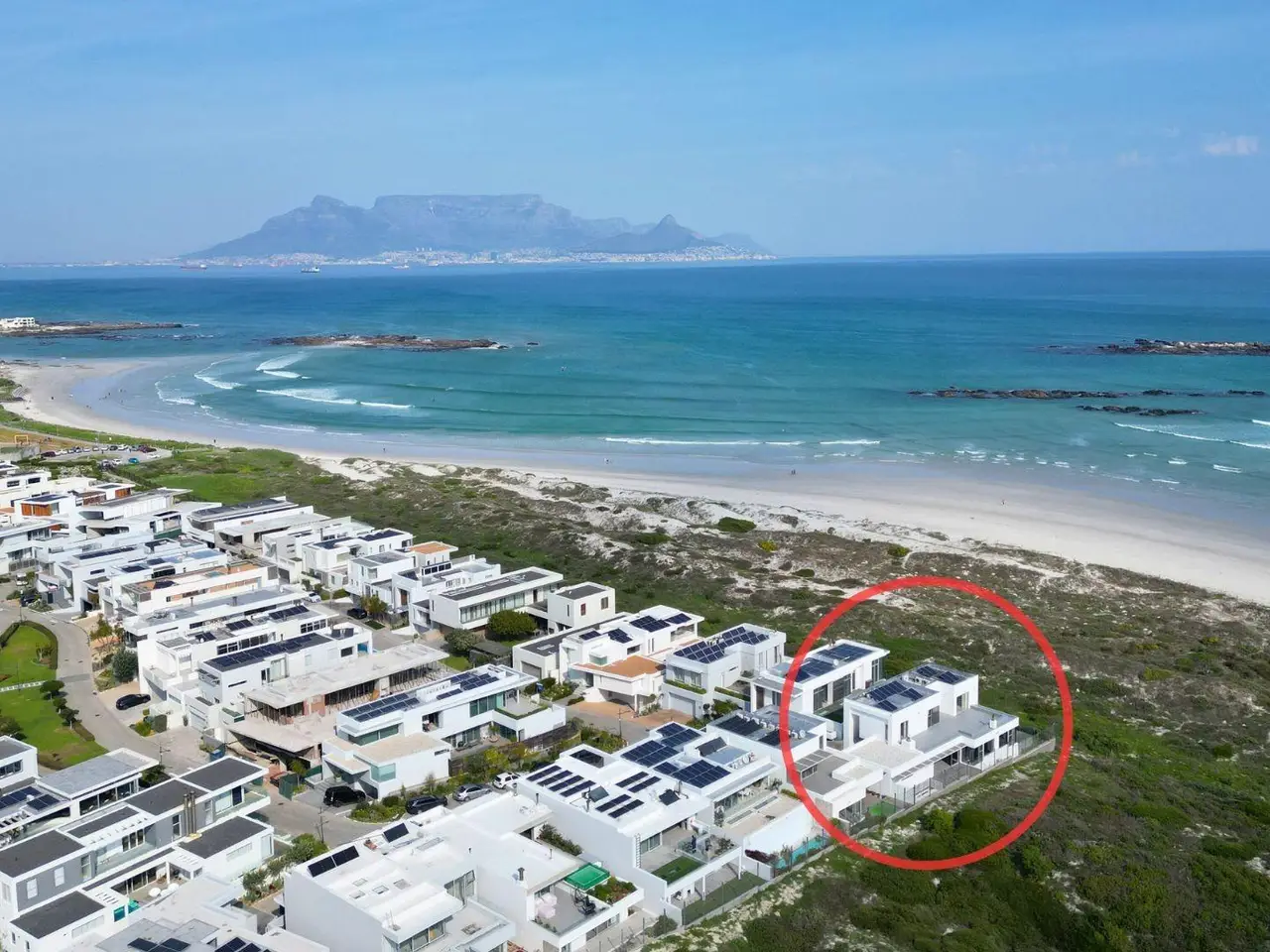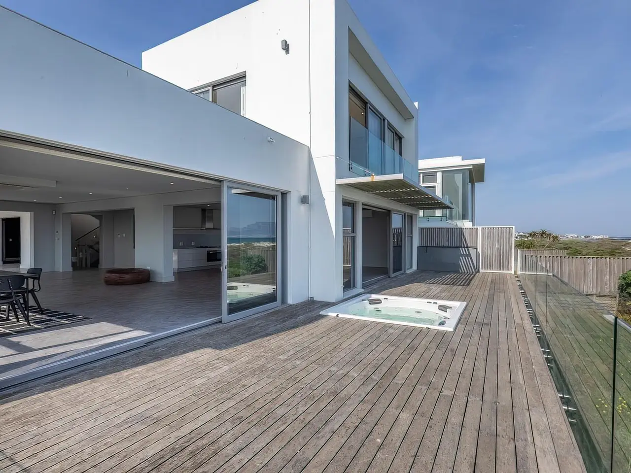 Positioned within the exclusive Water's Edge Beach Estate, this extraordinary 860m² architectural masterpiece offers a lifestyle of unparalleled luxury and space. This is more than a residence; it's a front-row seat to the breathtaking beauty of the Atlantic Ocean, iconic Table Mountain, and historic Robben Island. Spanning three magnificent levels and serviced by a private luxury lift, the home features five palatial en-suite bedrooms, each a sanctuary of comfort and privacy. The home's core is a spectacular open-plan entertainment area, where the living, dining, and a gourmet kitchen merge seamlessly with the natural beauty of the outdoors. The kitchen is a chef's dream, appointed with state-of-the-art appliances and a discreet, separate scullery. For seamless indoor-outdoor living, a dedicated braai room opens to a seaside vista over the protected fynbos greenbelt, perfect for elegant alfresco dining. Lower Level: • Home Gym: A dedicated space for your private fitness routine. • Versatile Rooms: Two expansive, adaptable rooms perfect for a state-of-the-art home cinema, a sophisticated cellar and bar, a games room, or a private home office. • Guest Bathroom: Servicing the lower level with style. • Two Quiet Bedroom Suites: Providing exceptional privacy for guests or family. • Operations Room: A functional space for the home's technical needs. Ground Floor: • Expansive Living Areas: A vast, fluid space designed for grand entertaining and intimate gatherings. • Seamless Transition: Wall-to-wall glass sliding doors open to a sun-drenched seaside deck with a jacuzzi. • Gourmet Kitchen: Featuring a private scullery and pantry, designed for both functionality and elegance. • Indoor Braai Area: An integrated lounge and dining space that blends indoor comfort with outdoor views. • Guest Bedroom Suite: A private, ground-floor suite. • Guest Bathroom: Conveniently located for guests. • Direct Garage Access: A double garage provides secure and easy access. First Floor: • Master Suite: An opulent master retreat with a dressing room, private terrace and sweeping, panoramic ocean and mountain views. • Shared Terrace: A private terrace is shared between the two bedroom suites on this floor, offering a secluded space to enjoy the stillness of nature and beach views. • Second Bedroom Suite: A luxurious suite with access to the terrace overlooking the greenbelt and ocean. Embrace a lifestyle where the untamed beauty of the ocean meets the refined elegance of a world-class residence.