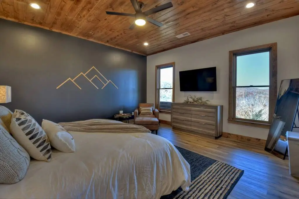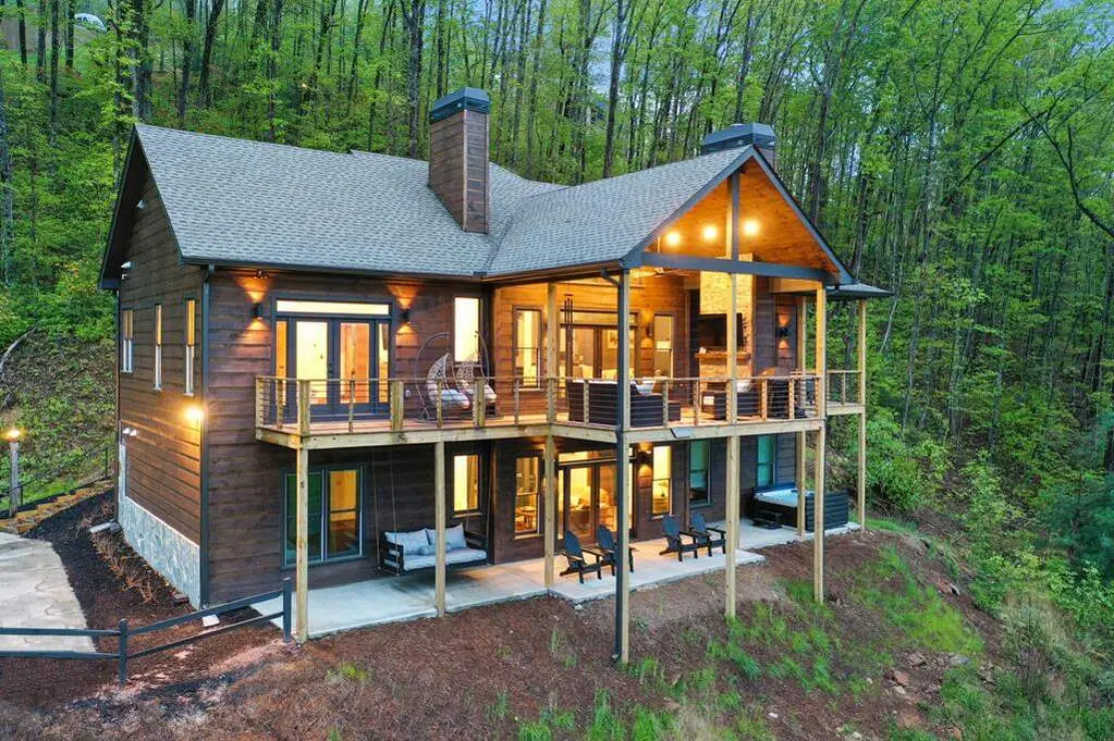 As seen on HGTV - Luxury mountain escape with STUNNING, unobstructed SUNSET VIEWS overlooking the Cohutta Wilderness! Upscale gated community with all paved roads, underground power and high speed internet. Professionally designed with high-end finishes and upgrades throughout, with an open concept floor plan that features vaulted ceilings and floor-to-ceiling windows to take in the incredible long range views. Meticulously maintained 4 bedroom, 3 bath plus additional sleeping loft with wow factor views from every room! Well-appointed chefs kitchen with separate dining area for large family gatherings. Plenty of outdoor entertaining areas including oversized covered porch off great room featuring a must-have outdoor fireplace and dining area overlooking one of the best views in Blue Ridge!. Terrace level features 2 additional guest suites, wet bar, game room and additional covered porch area with hot tub. Whole house water filtration system. Top of the mountain with plenty of parking, perfect for luxury rental program, full time living or much needed mountain getaway. Scenic drive conveniently located to historic downtown Blue Ridge, as well as, hiking, trophy trout fishing, Lake Blue Ridge, horse back riding, shopping, dining and more!
