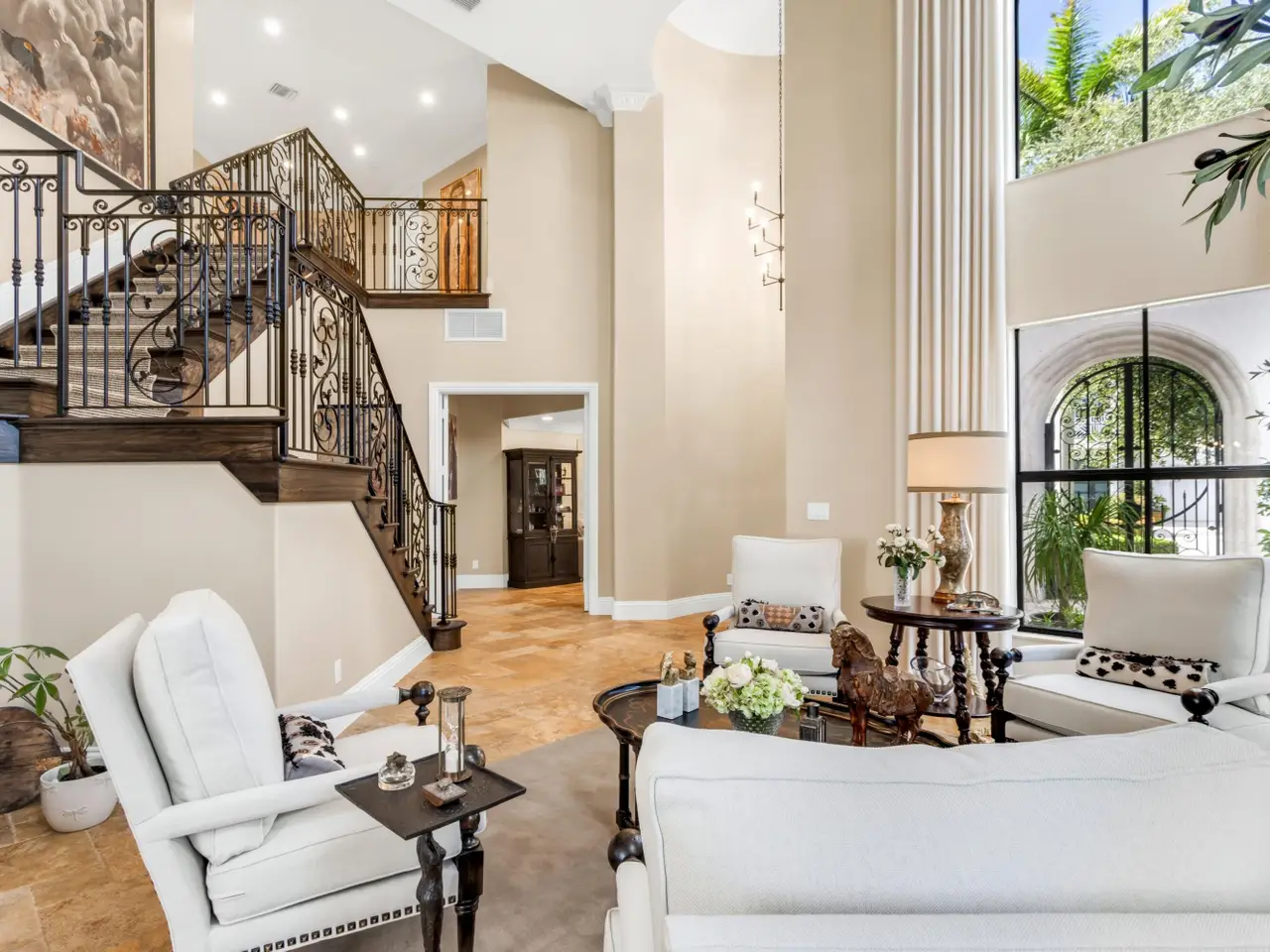 Welcome to your exquisite new residence, where luxury meets elegance. This meticulously maintained home is a must-see for any discerning buyer.Nestled on approximately 83 feet of waterfront in the prestigious Boca Harbour of Boca Raton, this Mediterranean estate offers direct ocean access without any fixed bridges.Spanning approximately 5,336 square feet, this stunning four-bedroom home features a breathtaking domed foyer with soaring 22-foot ceilings that flow into the spacious living room. The light-filled living area boasts floor-to-ceiling windows and a magnificent marble fireplace, seamlessly connecting to the separate dining room with picturesque water views.