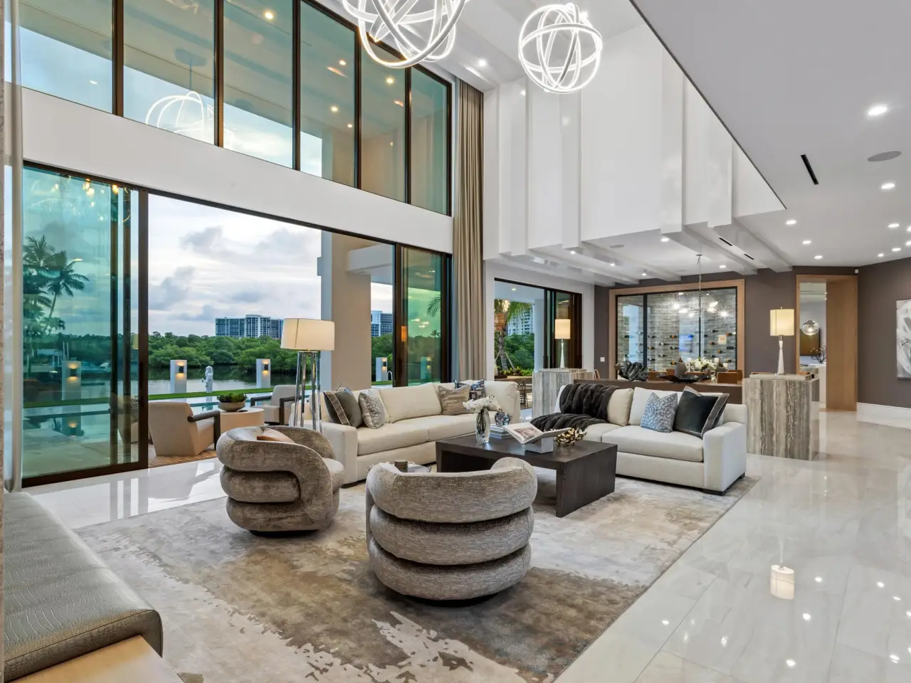 ''New'' Modern/Organic-inspired Sanctuary Point Estate sited on 173+/- feet of wraparound waterfrontage in The Sanctuary by awarding-winning team of Stephen Albanese Builders, Quinn Miklos Architects and Marc-Michaels Interior Design. A towering foyer entrance sets the stage for this 3-level estate encased in glass with panoramic water views and tranquil bird preserve setting from all major rooms. Epic primary wing with sleek dual baths, wardrobes and a separate lounge. Resort-style pool/spa and patio with entertainment lanai and cabana. Rare, protected mega-yacht side dockage with straight 131+/- feet. Other amenities include Club Room with a separate Office, 3rd Level Game/Exercise Room, Wine Room, Elevator and 4 bay garage. Truly setting a new level in Boca Raton waterfront estate living!
