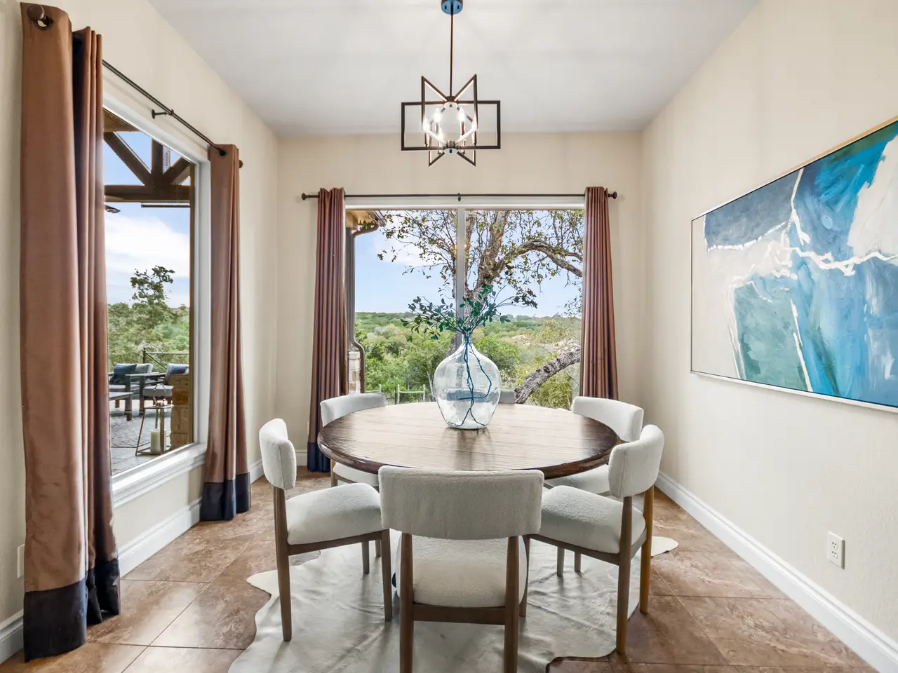 Experience all that Cordillera Ranch has to offer and enjoy the beautiful views at this exquisite one story ranch style home located close to the Guadalupe River Park. This property sits on just over 2 acres and has 4 nice size bedrooms and 2.5 bathrooms and a 3 car garage. As you walk in the home you are greeted with a wall of windows to take in the spectacular hill country views, a floor to ceiling stone fireplace with built in cabinets on each side, central vacuum, a large entertainer's kitchen with gas cooking, double ovens, an island, and eat in bar top. The enlarged outdoor covered patio is impressive. Equipped with an outdoor fireplace, misting system, designated kitchen for grilling, and plenty of room to create an additional outdoor cozy living space. The location of this property is equipped with city water and sewer. Come and make this house your home.