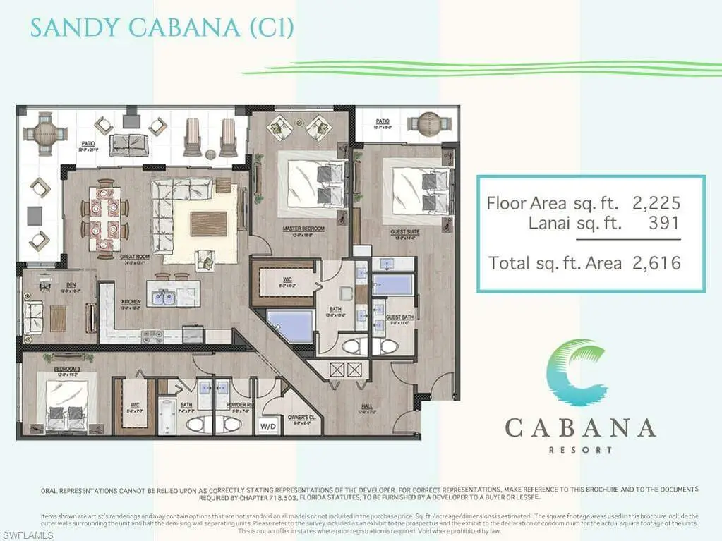 C667 - Cabana is bringing vacation destination amenities and day-through-night family focused attractions to Bonita Springs. It will elevate Florida style fun in the sun to state-of-the-art standing. Its 7 acres of Resort Pools feature a winding Lazy River, 'surfable' triple Flow Rider water feature, a pool with multiple water slides, all within 3 pool areas. 7 stories of energized contemporary architecture introduce a fresh face to Gulf view condo living with teak trimmed, unit-wide glass balconies and spacious floorplans, all bookended by massive ground to rooftop art installations. Cabana's Grand Food Hall is an airy and open expanse sheathed in glass for 360* views. It's designed for boardwalk strolling, casual to fine dining, shopping, sampling and socializing over brews, pop-up arts and Bonita-centric sights in a year round setting.