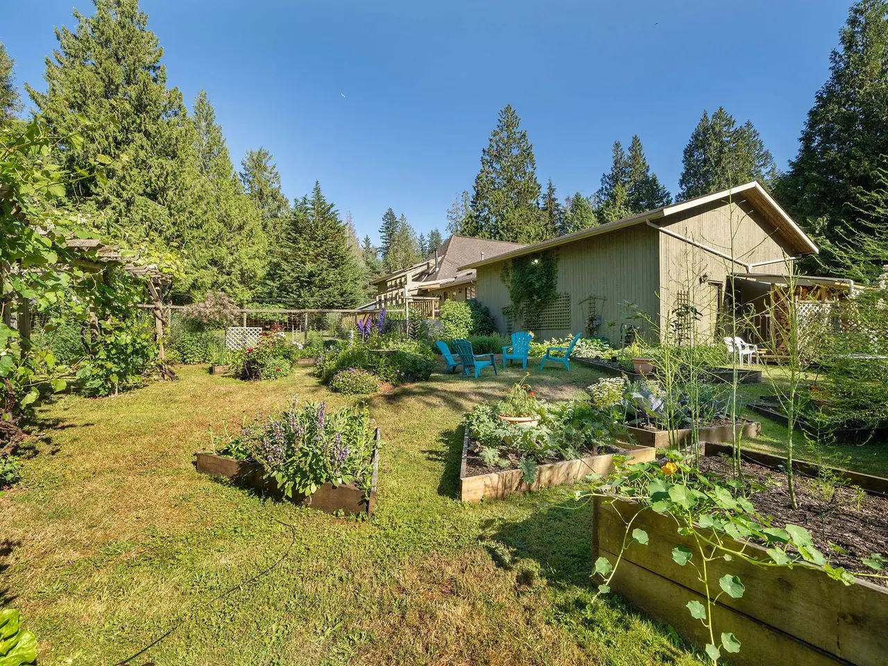 These 3.24 FLAT ACRES offer a RARE OPPORTUNITY to live your dream rural Bowen Island lifestyle with a beautiful family home, expansive garden, and oversize 2-car garage. If good sun exposure is at the top of your list you’ll love living here. Fruit trees, berries, flowering shrubs, and more, thrive in the garden. The meticulously maintained home features a 22’ wall of south-facing, triple pane windows, plus a family room w/ solarium glass. The upper floor is devoted to the primary suite with a loft open to below. Enhancing the indoor/outdoor lifestyle are sizable decks front & rear, with pastoral views of the land & surrounding forest. This property offers functionality for those seeking a serene country retreat with flexible options including ample space for a detached secondary dwelling.