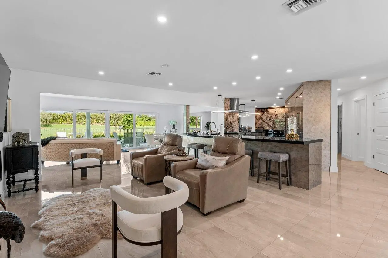 This rarely available 5BR Delray Dunes Golf & Country Club home is a must-see! Overlooking the 6th fairway with views of the 6th green , Completely rebuilt residence is model-ready with top-tier finishes. The reimagined kitchen features Italian cabinetry and appliances, wine fridge, expansive quartz countertops, and a wet bar with ice maker. Upgrades include new bathrooms, porcelain tile flooring throughout, new roof, completely impact, and a private spool. Sophisticatedly staged with custom furniture. As a member of Delray Dunes enjoy a newly renovated 18-hole Pete Dye golf course, Clubhouse, Fitness center, a stunning new pool with bar, expanded outdoor dining, and two illuminated tennis courts. Sellers are open to negotiating the conveyance of all furnishings.