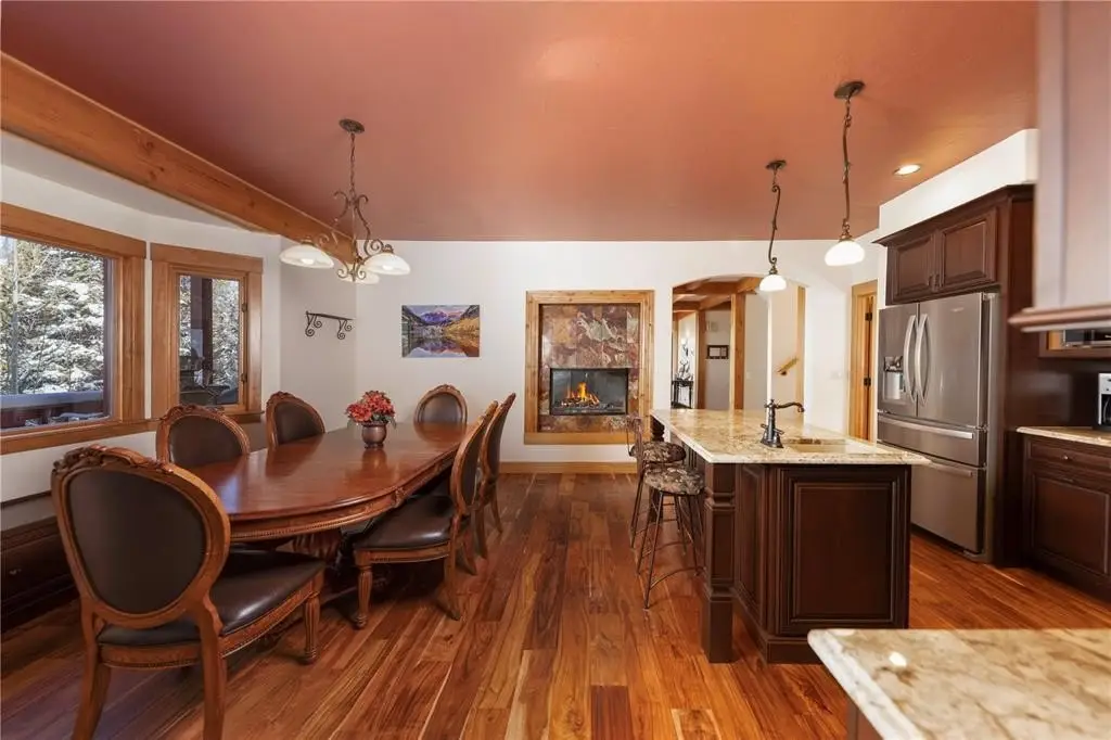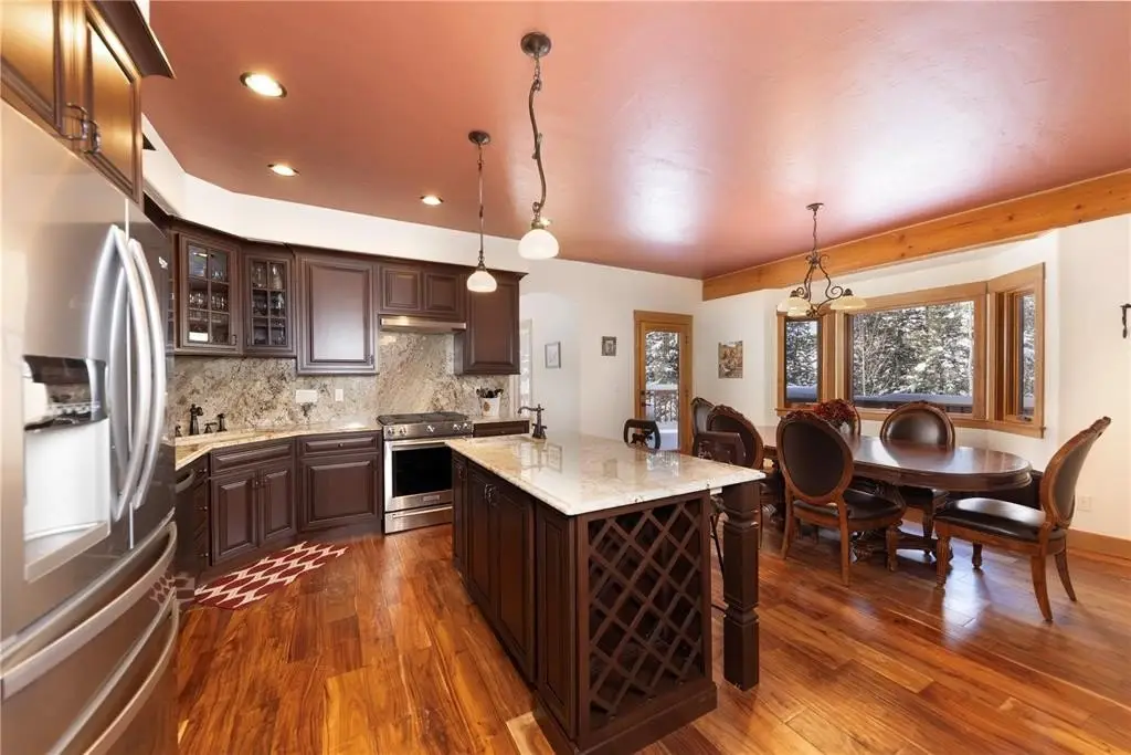 这栋三层木结构住宅完美融合了山地魅力与舒适感,地理位置优越,坐落在一条尽头路内,位于宽敞的私人地块上,距离科罗拉多小径仅几步之遥。这片广阔的私人地块环境宁静,可欣赏山景,方便进行山地自行车运动,距离布雷肯里奇市中心和弗里斯科仅几分钟路程。进入住宅内部,高耸的拱形天花板以优雅的桁架结构为特色,为温馨开放的起居空间奠定了基础。住宅设有两个起居区、一个葡萄酒室、一个游戏室和一个充满自然光的明亮日光浴室,为您提供充足的休闲和娱乐空间。两车位车库为您的山地探险提供便利。在这栋专为舒适、冒险和难忘时刻而设计的住宅中,拥抱科罗拉多生活方式,周围环绕着大自然的美丽景色。还可轻松前往布雷肯里奇、基斯通、A-Basin 和 Copper 滑雪场。