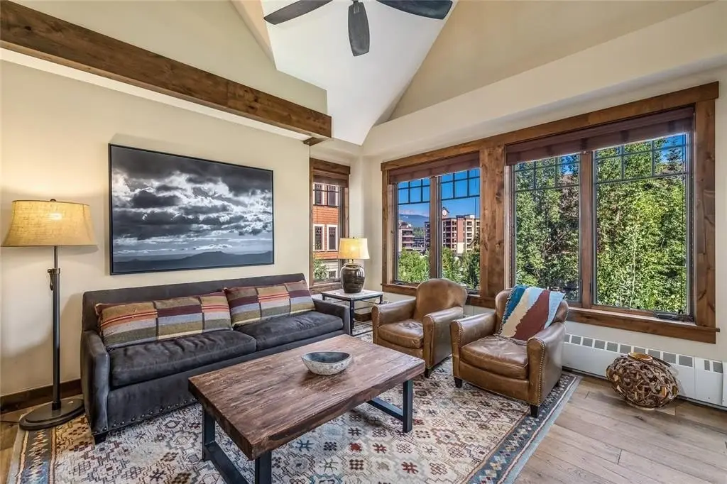 Experience the best of Breckenridge with this rare three bedroom mountain retreat in the sought-after Water House on Main. Perfectly situated in the heart of downtown, you're just steps from premier dining, shopping, and the Quicksilver Chairlift on Peak 9. Take advantage of this ideal location within the coveted resort zone, ideal for short-term rental income or unparalleled access for your alpine getaway. Vaulted ceilings and large windows frame peaceful views over the wetlands and toward Illinois Gulch. Mountain-modern furnishings and high-end finishes make this ski resort residence truly turnkey. Enjoy premium amenities including a pool, hot tubs, sauna, fitness center, ski locker and valet, and private owner’s bike storage room. An ideal blend of luxury, convenience, and rental potential in one of Breckenridge’s most desirable locations.