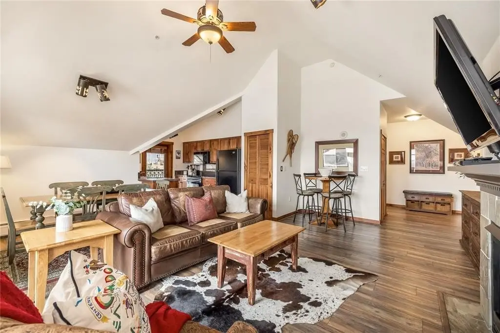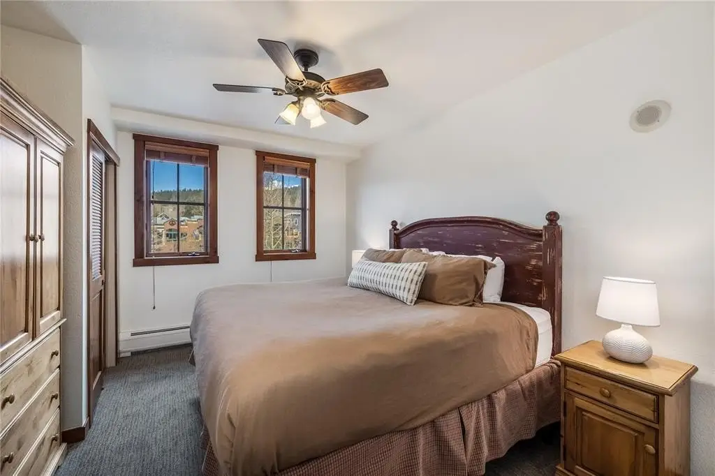Enjoy panoramic views of the vibrant downtown scene and surrounding peaks. Perched at the unique vantage point of Park Avenue and Main Street, this top-floor corner residence offers a front-row seat to the best of Breckenridge. This residence lives large with an expansive great room, two private balconies, vaulted ceilings and only one shared wall. Just steps from the Quicksilver chairlift on Peak 9 or enjoy historic downtown with boutique shops, award-winning restaurants, seasonal festivals, and miles of hiking and biking trails. Owners and guests enjoy exclusive access to the Pioneer Club with concierge services, a heated pool, hot tubs, steam room, and fitness center. A true turnkey, four-season retreat with strong rental potential and unbeatable access to everything Breck has to offer