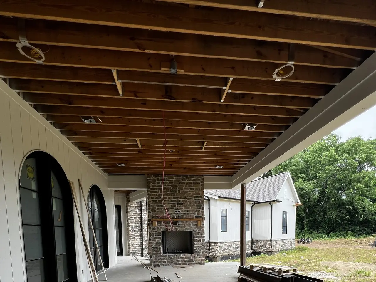 带顶棚的门廊,配有火盆烤架和披萨烤箱