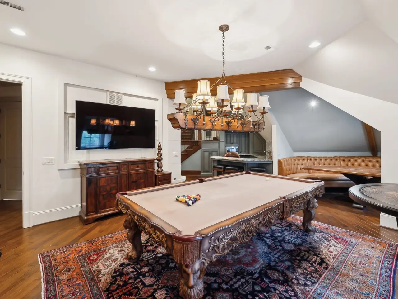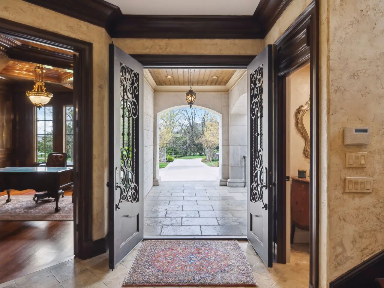 Nestled within the exclusive, gated enclave of Woodward Hills, this masterfully designed estate offers an unparalleled blend of architectural artistry and modern luxury. This residence is a true masterpiece, featuring hand-hewn limestone from the historic Avon Conley Farm in Woodbury, TN. Every inch of this home exudes elegance, with interiors curated by nationally renowned artisans, Faux Design and Jay Bernard, whose exceptional work brings depth and sophistication to every space. The primary suite ceiling transforms from a serene daytime sky into a celestial nightscape, while the intricately painted dome above the grand spiral staircase creates a breathtaking focal point in the foyer. Designed for both entertaining and relaxation, this home boasts an abundance of indoor and outdoor living spaces. The grand entry foyer leads to a chef's kitchen outfitted with premium stainless-steel appliances, while five fireplaces throughout add warmth and grandeur. The primary suite on the main level is a true retreat, featuring a spa-like bath with a Mother of Pearl ceiling, a footed tub, and exquisite tilework. Upstairs, a state-of-the-art media room seamlessly connects to the billiards lounge via a sophisticated wet bar, complete with a beverage center, microwave, and dishwasher. The third floor offers a private exercise studio, ensuring convenience and luxury at every level. Stepping outside, the estate transforms into a private resort-style oasis. A covered porch and a stunning pool with a custom-built slide and spa create the perfect setting for outdoor enjoyment. The outdoor kitchen, featuring a built-in gas grill, is ideal for al fresco dining, while the pool house with its own fireplace invites cozy gatherings under the stars. Every detail of this exceptional residence has been crafted to offer a harmonious blend of sophistication, comfort, and exclusivity. An extraordinary opportunity to own a home where art, design, and luxury living converge in perfect balance.