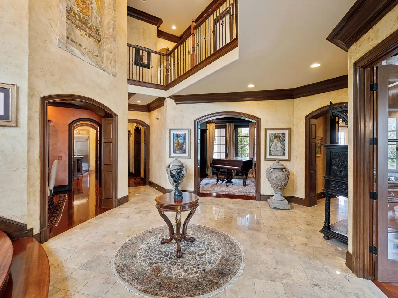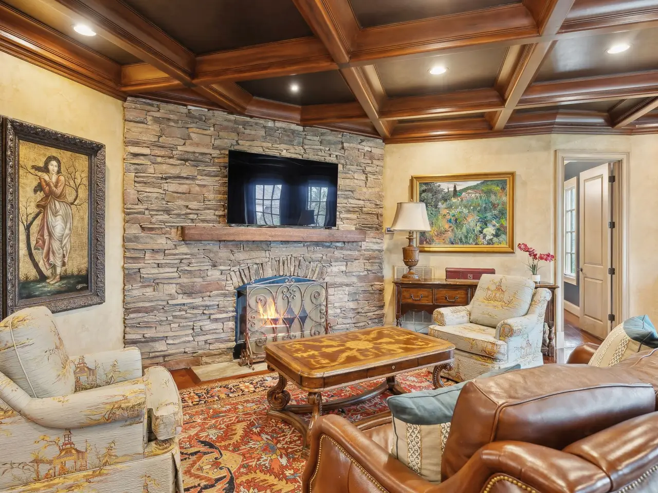 Nestled within the exclusive, gated enclave of Woodward Hills, this masterfully designed estate offers an unparalleled blend of architectural artistry and modern luxury. This residence is a true masterpiece, featuring hand-hewn limestone from the historic Avon Conley Farm in Woodbury, TN. Every inch of this home exudes elegance, with interiors curated by nationally renowned artisans, Faux Design and Jay Bernard, whose exceptional work brings depth and sophistication to every space. The primary suite ceiling transforms from a serene daytime sky into a celestial nightscape, while the intricately painted dome above the grand spiral staircase creates a breathtaking focal point in the foyer. Designed for both entertaining and relaxation, this home boasts an abundance of indoor and outdoor living spaces. The grand entry foyer leads to a chef's kitchen outfitted with premium stainless-steel appliances, while five fireplaces throughout add warmth and grandeur. The primary suite on the main level is a true retreat, featuring a spa-like bath with a Mother of Pearl ceiling, a footed tub, and exquisite tilework. Upstairs, a state-of-the-art media room seamlessly connects to the billiards lounge via a sophisticated wet bar, complete with a beverage center, microwave, and dishwasher. The third floor offers a private exercise studio, ensuring convenience and luxury at every level. Stepping outside, the estate transforms into a private resort-style oasis. A covered porch and a stunning pool with a custom-built slide and spa create the perfect setting for outdoor enjoyment. The outdoor kitchen, featuring a built-in gas grill, is ideal for al fresco dining, while the pool house with its own fireplace invites cozy gatherings under the stars. Every detail of this exceptional residence has been crafted to offer a harmonious blend of sophistication, comfort, and exclusivity. An extraordinary opportunity to own a home where art, design, and luxury living converge in perfect balance.