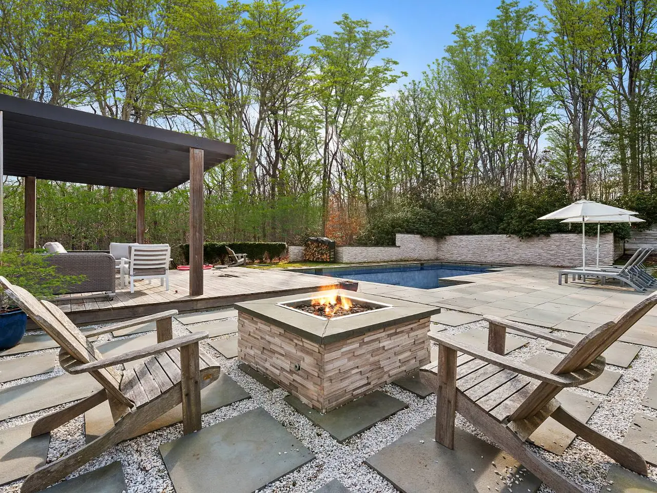 Your own piece of heaven is ideally situated moments to the villages of Bridgehampton and Sag Harbor. Set on 2.13 acres and boasting five bedrooms and 4.5 bathrooms, this home is THE place to enjoy a beautiful summer's day. The outdoor entertaining space is unparalleled, offering a new built in hot-tub, grand outdoor kitchen with Sub-Zero and Wolf appliances, heated gunite pool with a 1,000 square foot pergola, a gas fire-pit, as well as a wood burning one and ample lawn space. The interior is flooded with natural light that flows throughout the open floor plan of the living, dining and eat-in kitchen featuring Wolf and Sub-Zero appliances. The master suite with vaulted ceiling, large walk-in closet and gorgeous bath feels like a hotel suite you'll never want to leave. Four additional guest bedrooms ensure there will be room for everyone. The home also offers two separate family rooms, making it ideal for those working from home and needing the separation. This home is a must see!