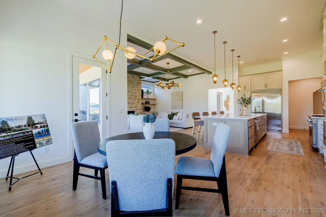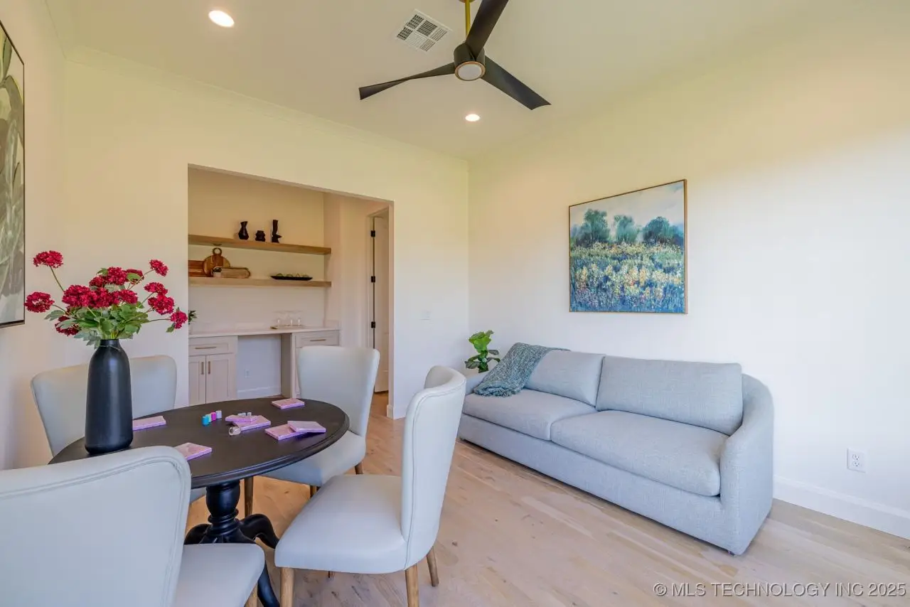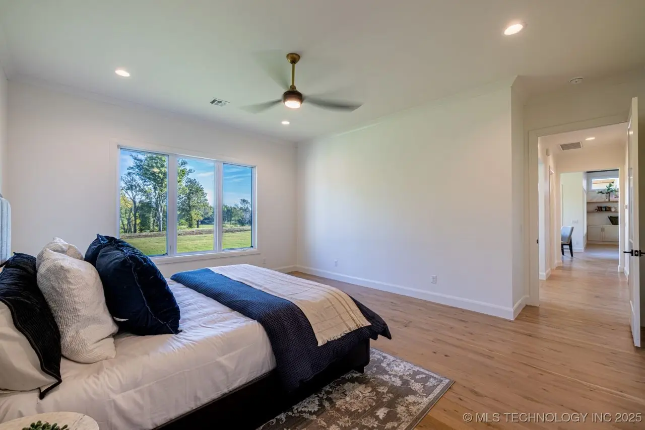 Experience elevated living in this beautifully designed new construction home, nestled along the pristine greens of Forrest Ridge Golf Course. This spacious and versatile layout features three bedrooms on the main level, including a stunning primary suite and a flexible third bedroom ideal for a home office. A dedicated drop zone and laundry room with built-in sink offer everyday convenience with a touch of luxury. The heart of the home is a light-filled open-concept kitchen, complete with custom soft-close cabinetry and a walk-in pantry, perfect for entertaining or everyday living. Gorgeous white oak hardwoods flow throughout the living spaces, adding warmth and timeless appeal. Agent related to Seller. Upstairs, you'll find two additional bedrooms, each with their own full bathroom, and a spacious game room, offering plenty of room for relaxation or guests. Step outside to the covered patio, your personal retreat with uninterrupted views of the golf course, perfect for enjoying Oklahoma sunsets in style. A rare opportunity to live in one of Broken Arrow's most desirable golf communities. Don't miss your chance to call this home.