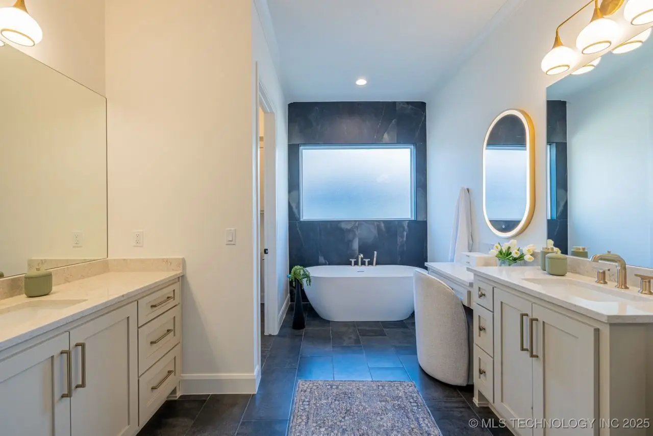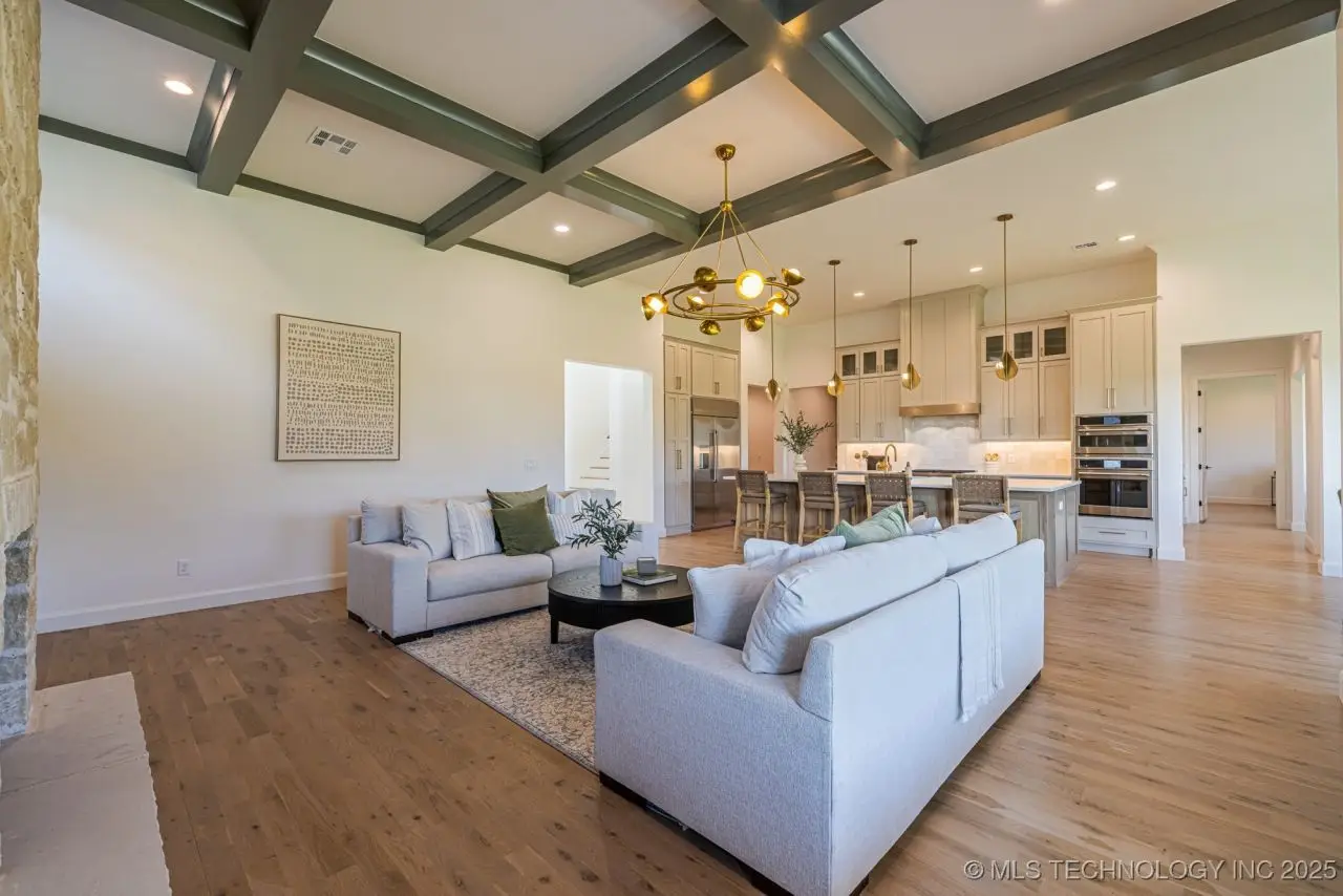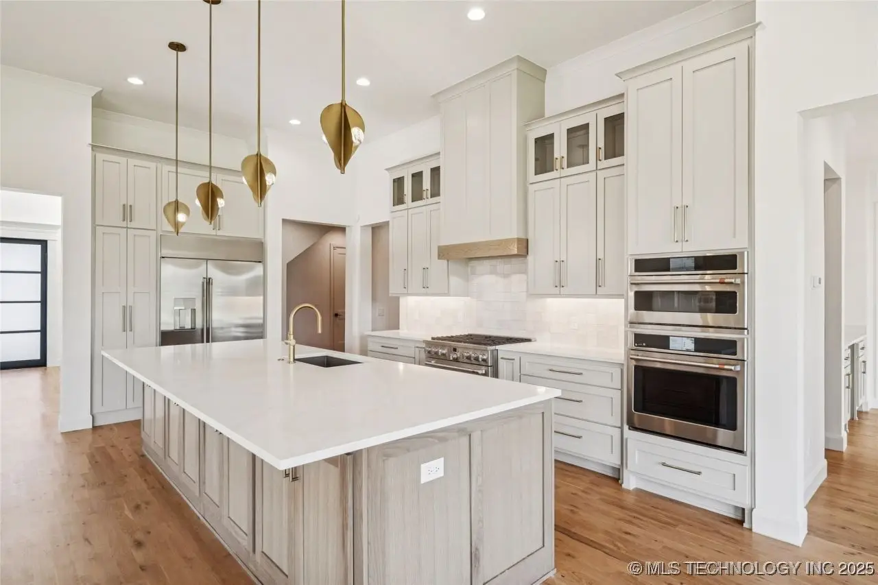 Experience elevated living in this beautifully designed new construction home, nestled along the pristine greens of Forrest Ridge Golf Course. This spacious and versatile layout features three bedrooms on the main level, including a stunning primary suite and a flexible third bedroom ideal for a home office. A dedicated drop zone and laundry room with built-in sink offer everyday convenience with a touch of luxury. The heart of the home is a light-filled open-concept kitchen, complete with custom soft-close cabinetry and a walk-in pantry, perfect for entertaining or everyday living. Gorgeous white oak hardwoods flow throughout the living spaces, adding warmth and timeless appeal. Agent related to Seller. Upstairs, you'll find two additional bedrooms, each with their own full bathroom, and a spacious game room, offering plenty of room for relaxation or guests. Step outside to the covered patio, your personal retreat with uninterrupted views of the golf course, perfect for enjoying Oklahoma sunsets in style. A rare opportunity to live in one of Broken Arrow's most desirable golf communities. Don't miss your chance to call this home.