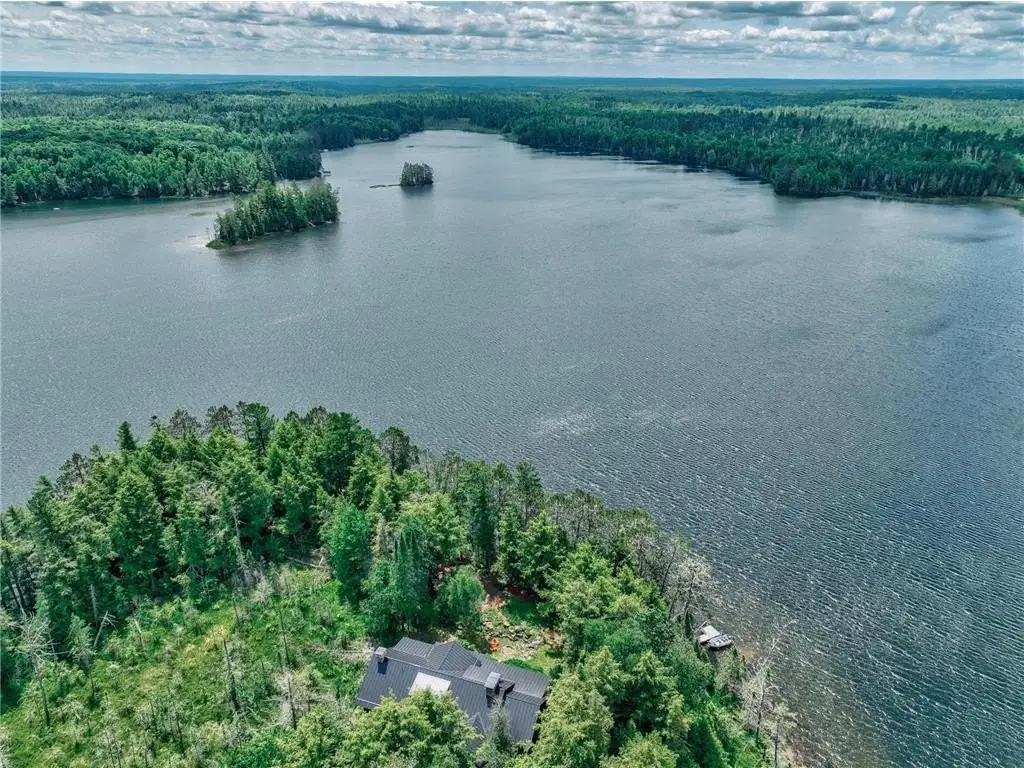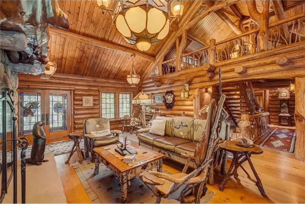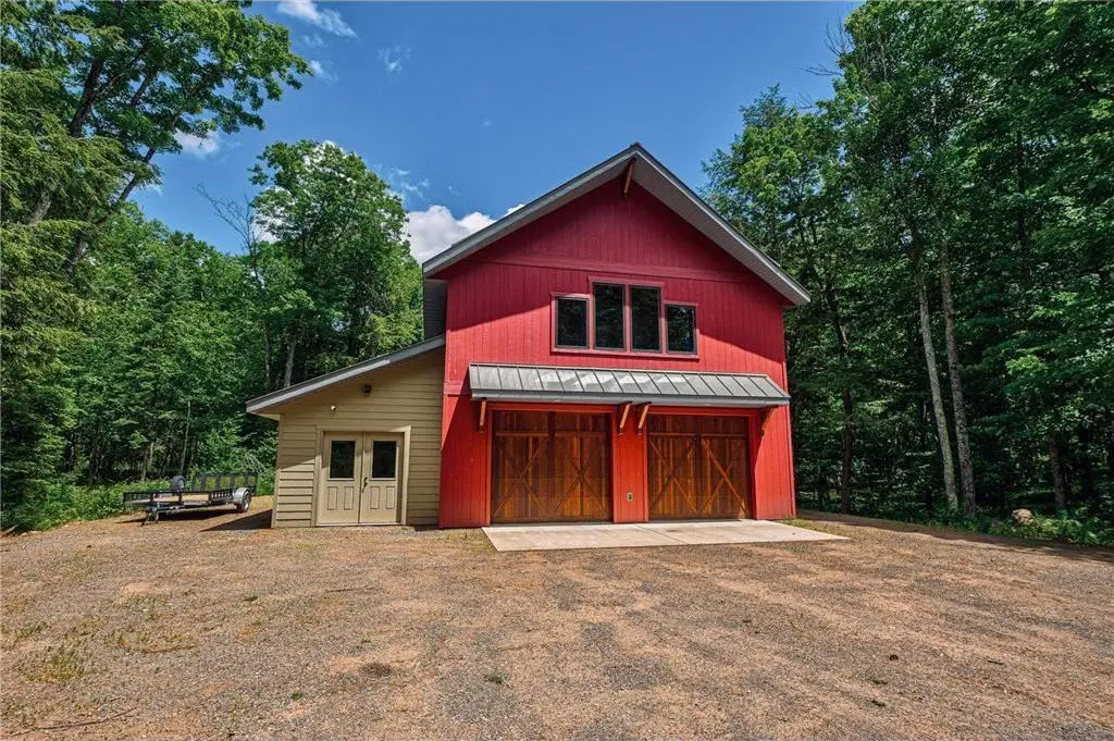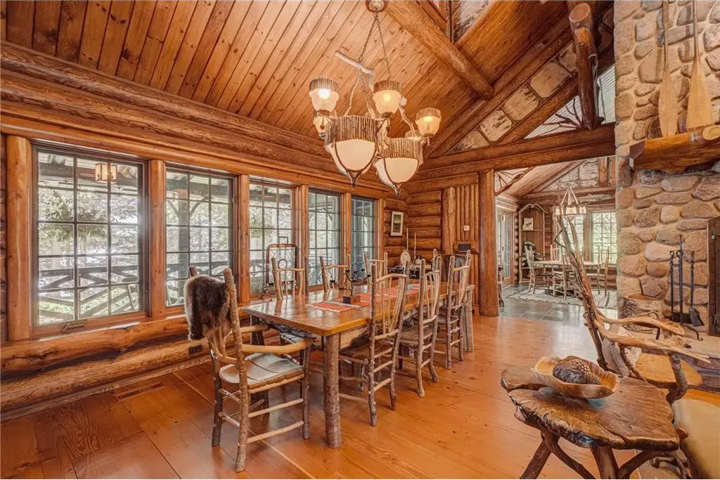 Adirondack-style log estate on a private peninsula with nearly 2,300 ft of frontage on 200-acre Buffalo Lake, a quiet lake in NW Wisconsin surrounded by the Chequamegon Forest. Inspired by the historic Great Camps, this 3-4BR/3.5BA retreat blends rustic elegance with exceptional craftsmanship-hand-peeled logs, birch bark accents, and custom natural finishes throughout. Designed with a dramatic great room, en-suite bedrooms, lakeside screen porch, and panoramic views that bring the outdoors in. The 16-acre lot offers sunset views, rare privacy, and a gentle slope to sandy, swimmable frontage. Wander the perennial landscape and unwind at the gazebo on the point. Oversized 2-car garage includes finished bonus space and bath-ideal for studio, office, or hobby use. A two-level shed offers generous storage for gear, toys, or workshop needs. A distinctive legacy property blending timeless design and understated luxury in a truly serene Northwoods setting.