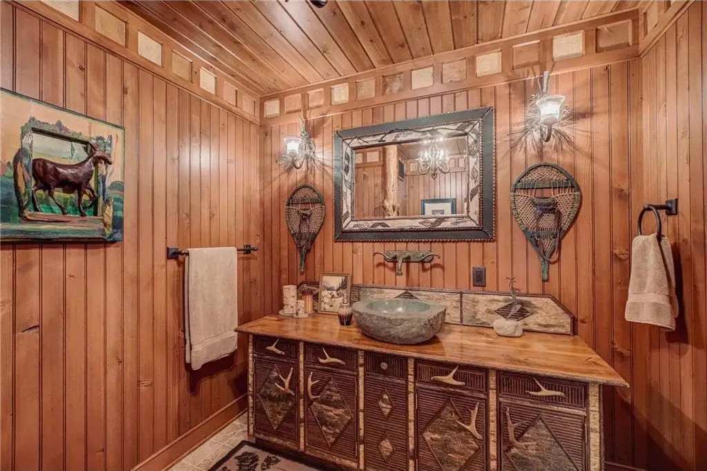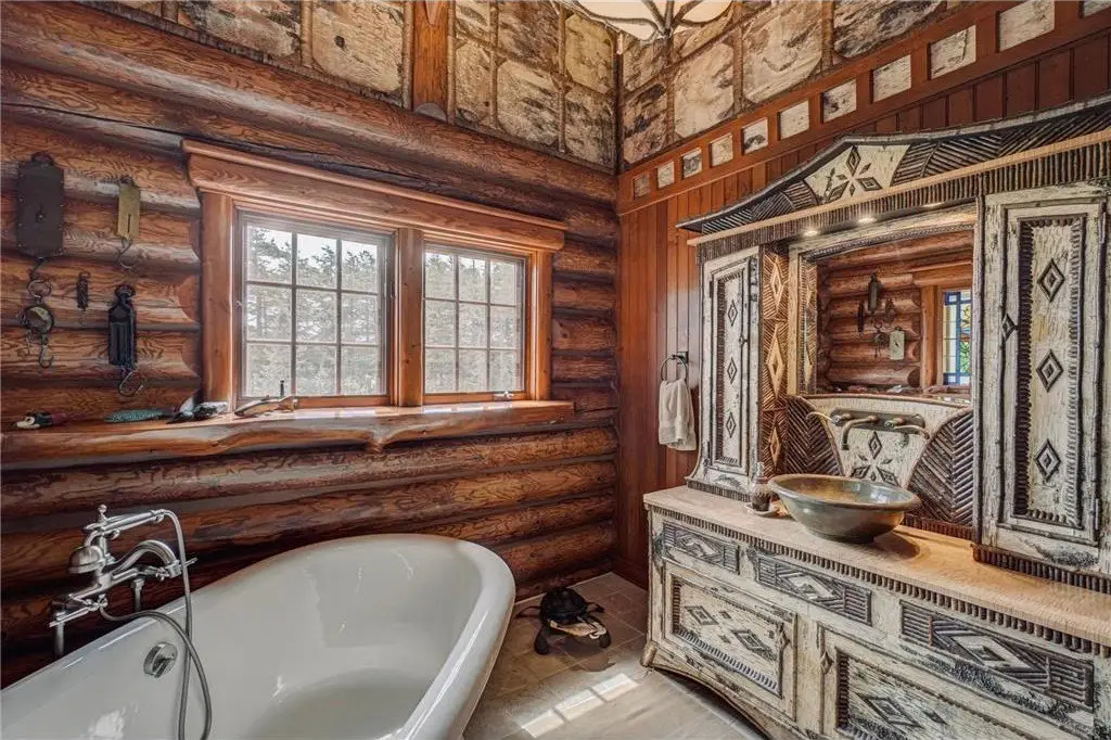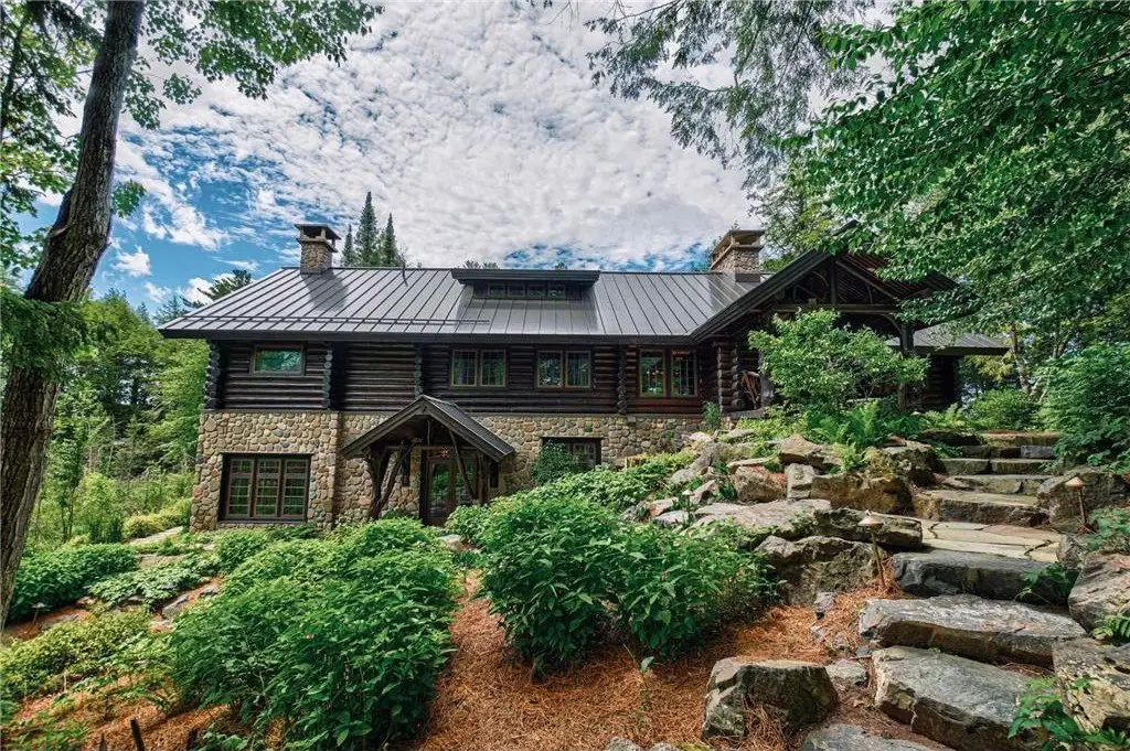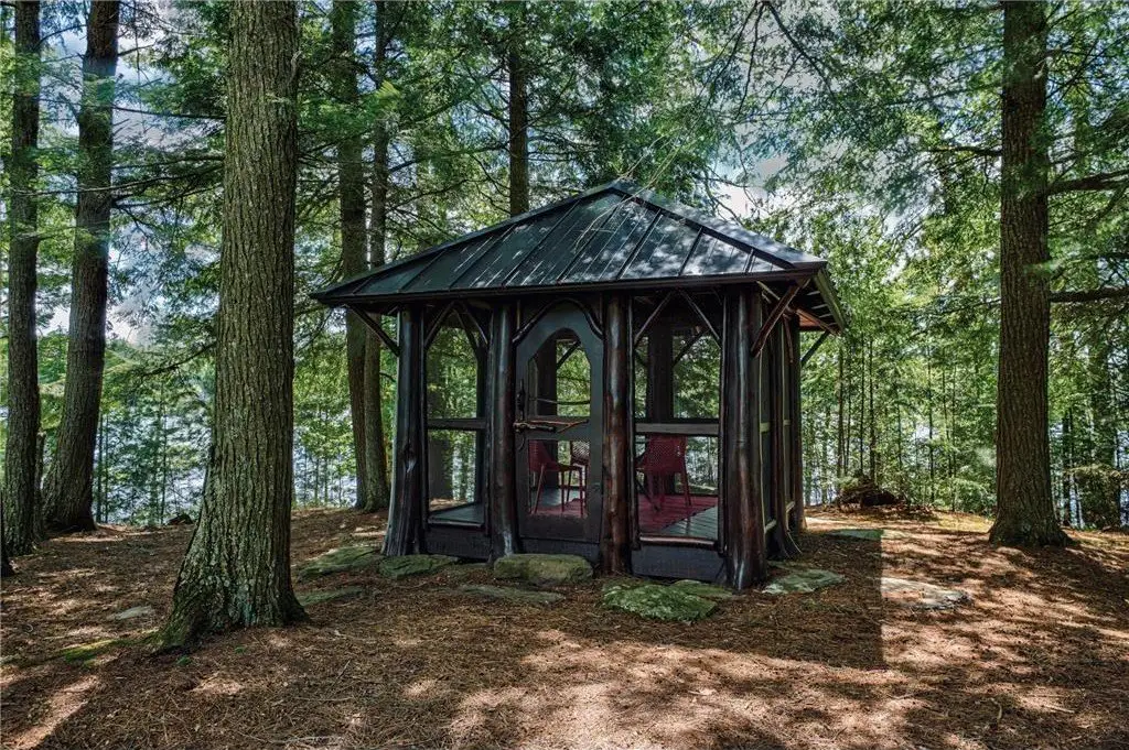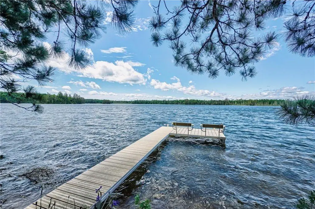 Adirondack-style log estate on a private peninsula with nearly 2,300 ft of frontage on 200-acre Buffalo Lake, a quiet lake in NW Wisconsin surrounded by the Chequamegon Forest. Inspired by the historic Great Camps, this 3-4BR/3.5BA retreat blends rustic elegance with exceptional craftsmanship-hand-peeled logs, birch bark accents, and custom natural finishes throughout. Designed with a dramatic great room, en-suite bedrooms, lakeside screen porch, and panoramic views that bring the outdoors in. The 16-acre lot offers sunset views, rare privacy, and a gentle slope to sandy, swimmable frontage. Wander the perennial landscape and unwind at the gazebo on the point. Oversized 2-car garage includes finished bonus space and bath-ideal for studio, office, or hobby use. A two-level shed offers generous storage for gear, toys, or workshop needs. A distinctive legacy property blending timeless design and understated luxury in a truly serene Northwoods setting.