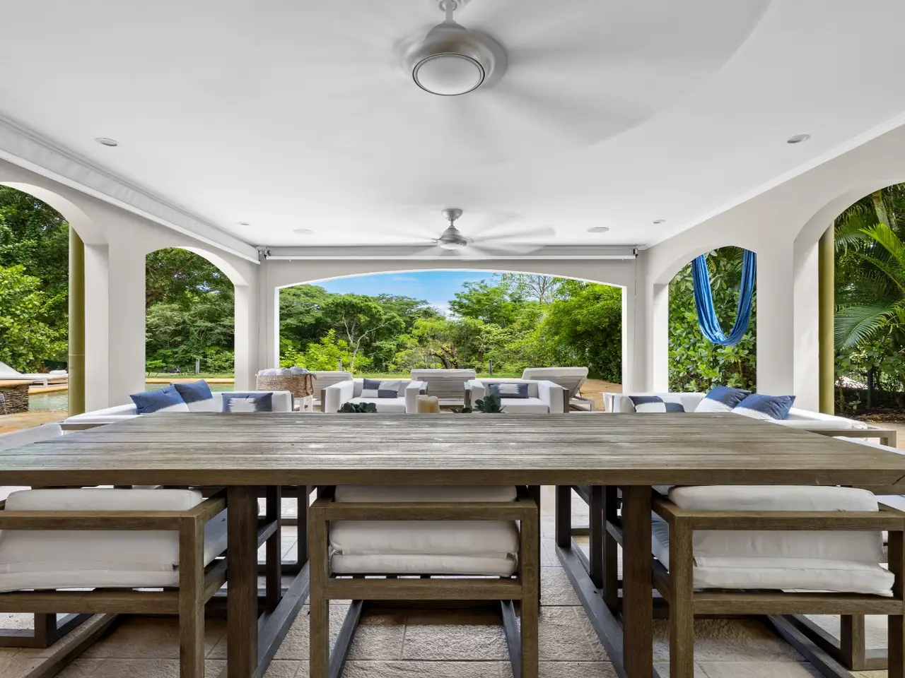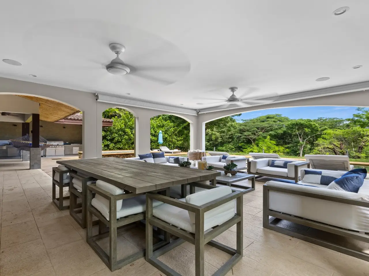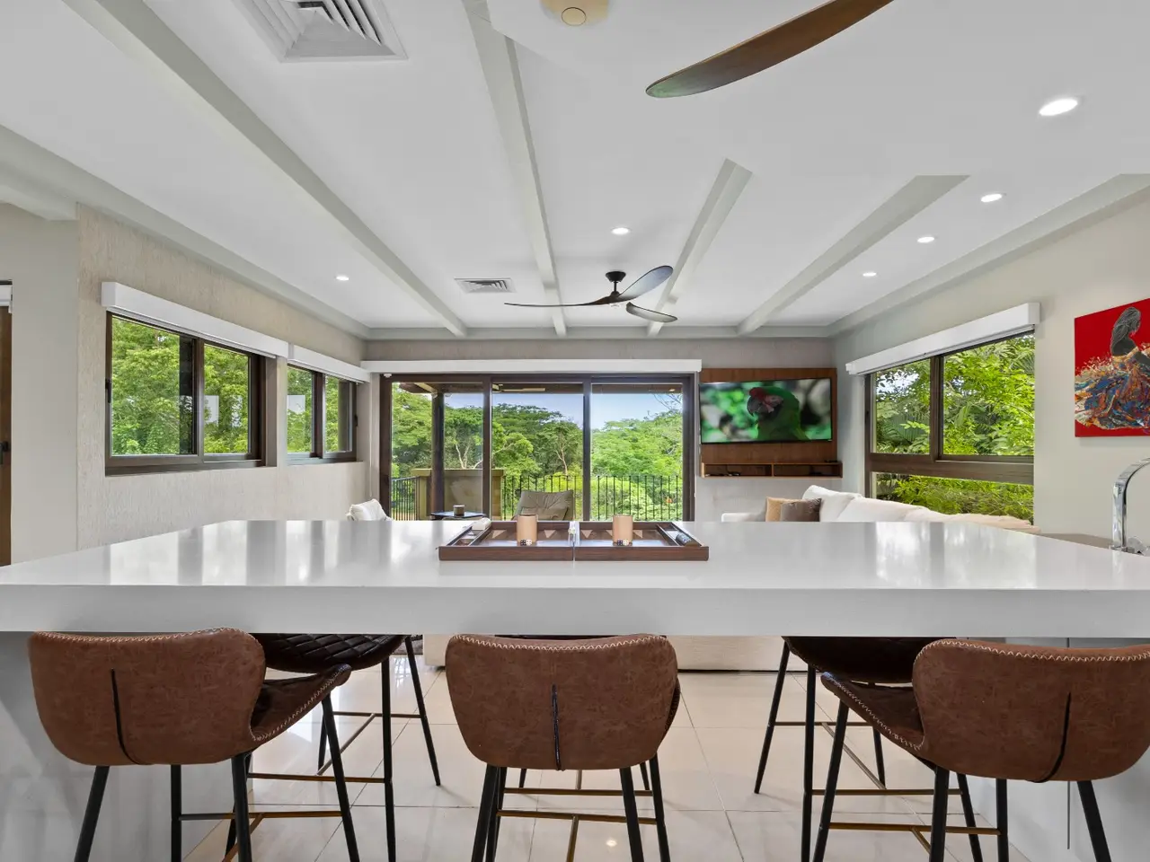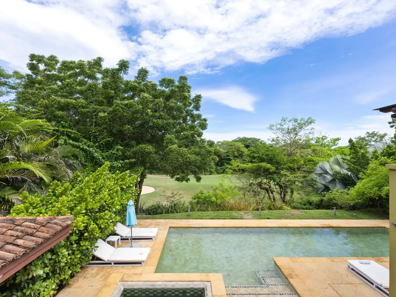 Welcome to Villa Carao #11, a sophisticated sanctuary located within the exclusive and gated Reserva Conchal community—one of Costa Rica’s premier luxury beach and golf resorts. This exquisitely renovated 4-bedroom, 4.5-bathroom villa spans over 6,781 sq ft (630 m²) across two thoughtfully designed levels, offering elegant indoor-outdoor living with spectacular golf course views and upscale amenities throughout. Refined Living Spaces The heart of the home features a bright, open-concept layout with high-end finishes, LED lighting, and elegant custom woodwork. A newly remodeled chef’s kitchen is outfitted with top-of-the-line appliances, two sink areas, abundant cabinetry and expansive countertops. It is ideal for culinary entertaining! Seamlessly connected to the interior, the lower level's expansive covered veranda invites space for outdoor dining and serene lounging with panoramic views of the Robert Trent Jones II–designed golf course. Whether sipping coffee at sunrise or hosting a sunset gathering, the setting is nothing short of spectacular. Private Bedroom Suites Each of the villa’s four bedrooms offers privacy, comfort, and style—each with its own ensuite bathroom: • The primary suite on the main level boasts a King bed, oversized walk-in closet, private terrace, and spa-inspired bathroom with skylit shower and two-person Jacuzzi tub. • A second main-level bedroom features a loft bed with a desk and garden views. It offers extra closet space. • Downstairs, a spacious guest suite includes two Queen beds, a sleeper sofa, and terrace access • Last, the 4th bedroom is currently being used as an office. Each has its own private bathroom with a convenient exterior door for poolside access. Luxury Outdoor Entertaining Designed for the ultimate in relaxation and entertaining, the villa’s outdoor living area features: • A newer custom pool and jacuzzi surrounded by lush tropical landscaping • A state-of-the-art summer kitchen with BBQ, dishwasher, and outdoor dining • Electric privacy blinds that convert the terrace into an enclosed, breezy living room • Hammocks, sun loungers, outdoor shower, and beautifully maintained gardens (HOA includes landscaping and irrigation) Additional highlights include a full generator (covered by HOA), custom electric blinds and LED lighting throughout, and generous walk-in closets for ample storage. A secondary entertainment kitchenette on the lower level offers double ovens, a wine and beverage refrigerator, and extensive storage. It is perfectly positioned for effortless poolside hosting! Lifestyle & Location As a privileged owner of Reserva Conchal, you gain exclusive access to: • A 60,000 sq ft private Beach Club with infinity pool and fine dining • A world-class fitness center, hiking and biking trails, dog park, and skate park • Stand-up paddleboards, kayaks, bikes, billiards, and nearly daily events • Discounts at 13 restaurants and 2 spas, plus vibrant community volunteer opportunities Ideally located just 2–10 minutes from the top international schools (La Paz, CRIA, Educarte), and only 1 hour from Liberia International Airport, Villa Carao #11 offers both unmatched convenience and a front-row seat to the best white sand beach in the region—Playa Conchal. Villa Carao 11 isn’t just a home—it’s a lifestyle. Don’t miss your chance to own a luxury golf villa in Costa Rica’s most coveted resort community. Schedule your private tour of Villa Carao #11 today.