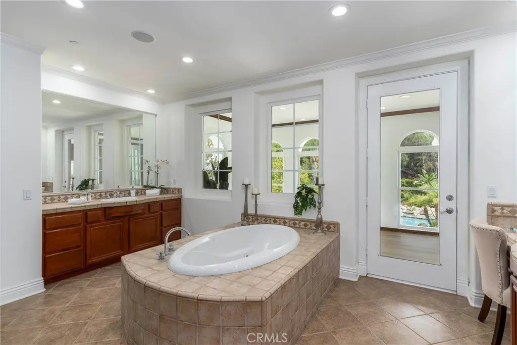Welcome to Mont Calabasas, one of the most exclusive gated communities in Calabasas. This elegant estate greets you with a private courtyard featuring a tranquil water fountain and a pergola-covered sitting area, setting the tone for refined living. Inside, a grand foyer with soaring ceilings and a dramatic circular staircase bathed in natural light makes an immediate impression. The home has been updated with new flooring and fresh interior paint throughout. Formal living and dining rooms, each with a fireplace, provide timeless settings for entertaining. A spacious family room with a fireplace opens seamlessly to the chef’s kitchen, appointed with a center island, granite counters, new double ovens, microwave, wine refrigerator, and a built-in 48-inch stainless steel refrigerator. A breakfast nook and island seating complete the space. The nearly half-acre grounds are a private resort, offering a sparkling pool, spa, water features, multiple outdoor seating areas, and a built-in BBQ for alfresco dining. Designed for both comfort and function, the floor plan includes one bedroom and a dedicated office downstairs, plus four bedrooms and an additional upstairs family room. The luxurious primary suite is a private retreat with a sitting area, fitness room, spa-like bath with dual vanities, oversized walk-in closets, and balconies overlooking the park-like grounds. Additional highlights include a whole-house water treatment system and thoughtful upgrades throughout. This residence blends timeless elegance with modern amenities, delivering the ultimate Calabasas lifestyle.