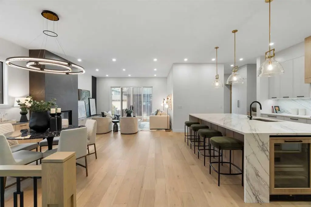 Welcome to 433 19th Avenue NW - A Contemporary Masterpiece in the Heart of Mount Pleasant. Nestled on a tranquil cul-de-sac, this JTA-designed home is a stunning example of modern luxury and thoughtful design. Located just minutes from downtown Calgary, with easy access to dining, shopping, and all the amenities the area has to offer, this property provides the perfect balance of convenience and privacy. As you enter, you’re welcomed by a spacious foyer with custom-built storage that sets the tone for the meticulous craftsmanship found throughout. To your right, a beautifully designed office overlooks the quiet front yard—ideal for those who work from home. A convenient 2-piece bathroom sits just beside, leading you into the heart of the home: the chef-inspired kitchen. This open-concept kitchen is truly an entertainer's dream, featuring integrated appliances for a seamless look, including a hidden beverage fridge. Ample storage is cleverly designed beneath the large central island, while around the corner, a stunning hidden pantry offers the perfect space for a coffee station and extra storage. The kitchen flows effortlessly into the dining area, creating the perfect setting for family gatherings. The adjoining living room, with its open layout, ensures you’re never far from the action, making this space perfect for young families. The upper floor is where you’ll find the show-stopping primary bedroom, bathed in natural light from three large windows. This generous retreat features a walk-in closet with built-in storage, offering all the space you could need. The luxurious ensuite is nothing short of spectacular, featuring his-and-hers sinks, a large soaker tub, and a built-in steam room—your own private spa experience. Adjacent to the primary suite is a versatile bonus room—ideal for a second office, playroom, or additional entertaining space. The second level also includes a convenient laundry room and two additional spacious bedrooms, each with their own ensuite bathroom. The lower level offers even more living space with a fully finished basement that includes a cozy fourth bedroom, perfect for guests. The full bathroom adjacent to the bedroom provides privacy and convenience for visitors. The basement also boasts a home gym, making it easy to stay active from the comfort of your own home. The oversized rec room features a sleek wet bar, making this space ideal for entertaining or enjoying a family movie night. Lastly, you will be amazed by the spacious and heated detached THREE CAR GARAGE. With downtown Calgary just a short drive away, and a variety of local restaurants and shops just around the corner, this home’s location cannot be beat. Plus, the peace and quiet of living on a cul-de-sac ensures that you can enjoy both the best of city living and the serenity of your private retreat. Don’t miss your chance to own this exceptional property!