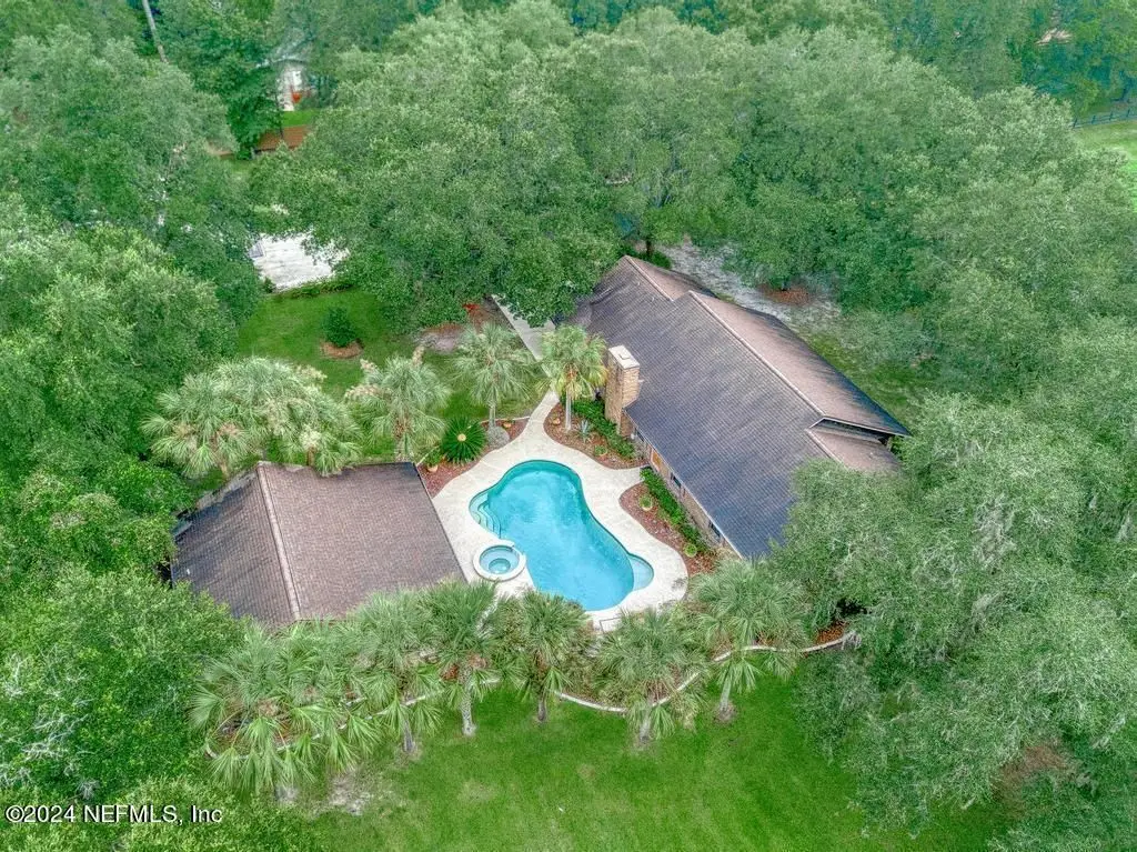 Welcome to this exceptional 40+ acre estate, where luxury and nature harmoniously converge. As you enter through the gated entrance, a picturesque tree-lined driveway guides you to a classic brick, single-story home featuring 4 bedrooms,3.5 bathrooms. This multigenerational home is thoughtfully designed for comfort & elegance. The expansive open front porch offers serene views of the lush pasture, setting the stage for tranquil mornings. Inside, the owner's suite is a sanctuary, complete w/ a luxury jetted soaking tub, his & her vanities, a separate shower, & exquisite tile finishes. The formal living & dining rooms provide an ideal space for entertaining, while the spacious kitchen boasts beautiful granite countertops & generous cabinet space. Outdoor living is a dream w/ a 1/2 acre pond & shooting gallery, perfect for the sportsman or outdoor enthusiast. The resort-like setting continues w/ an inground pool, surrounded by palm trees & lush landscaping, nestled between the home and the pool house. The pool house is the ultimate retreat, offering a bar, recreation area, and a 1/2 batha perfect spot to relax during the heat of the day or use a an awesome Man Cave or She Shack. This estate also includes a pole barn and shed for livestock, adding to its versatility. The 1-bedroom, 1-bathroom guest house is ideal for visitors, used as an in-law suite, or can be rented as an Airbnb or long-term rental, offering additional income potential. Additional features include a 2-car garage with manual doors (currently used as a workshop), craft room, and shed, making this property not only a luxurious residence but also a practical one. Whether you're looking for a multigenerational living space, a peaceful retreat with rental income potential, a property offering land for livestock or small farm, this estate has it all. Next door to civilization yet away from it all, this remarkable property can satisfy the person looking for peace and quiet, a place to fish and hunt, raise livestock, have an amazing garden, have a separate income producing dwelling, the family with multigenerational needs, or whatever you can imagine!!!