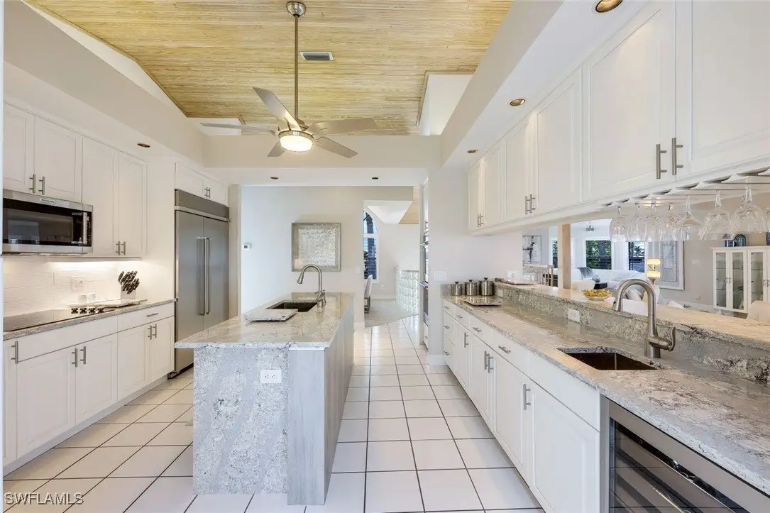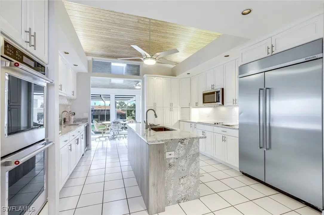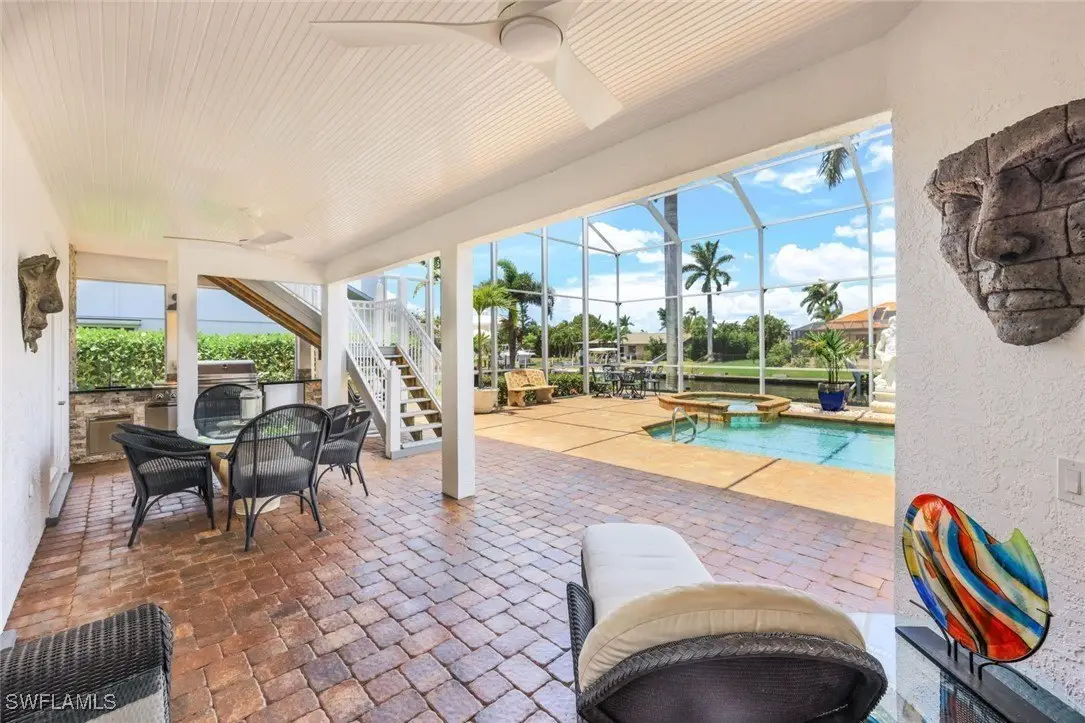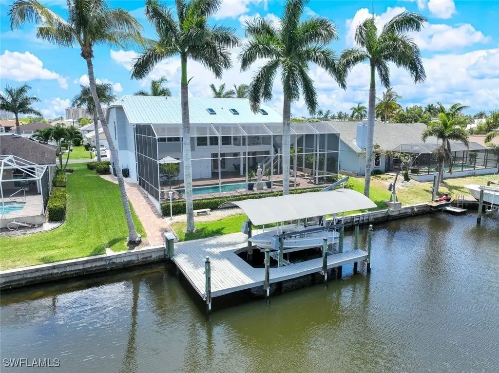 Custom built gorgeous home with DIRECT Sailboat Gulf Access. Two-story, three bedrooms, office/den, and a huge billiard or game room. Oversized and custom pool, in-ground spa, boat dock, with boat lift. A few recent updates and upgrades: New roof, new siding, skylights, and ceiling-to-floor impact glass in eat-in-kitchen. Whole home fresh paint. A complete kitchen remodel with new KitchenAid appliances including a 48-inch built-in refrigerator. Master bathroom update and remodel, a stunning walk-in shower with multiple shower heads, new countertops and bathroom fixtures. The pool and lanai area now have brand new outdoor kitchen, never used pool full bathroom downstairs. The owners are downsizing, and have meticulously maintained this home. Easy access to Cape Harbor and Tarpon Point Marina and a short ride to The Gulf of Mexico. There are so many special features to this home. If you are looking for a beautiful, gulf access, home, then this home is a MUST SEE!