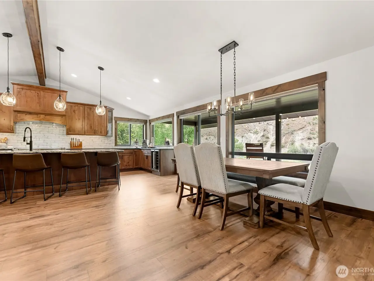 Riverfront Estate on 10.50 Acres: Delight in over 1,200 feet of waterfront featuring impressive river vistas from inside the home. The main residence and guest cabin have been elegantly updated with premium finishes; it includes 3 BD, 2 BA, and a gourmet kitchen showcasing a beautiful Italian gas range. Both the residence and guest cabin are fully furnished, making it move-in ready. The appealing guest cabin offers 2 BD, 1 BA, along with a spacious sunroom that can function as a bunk room, studio, or recreational space. Enjoy outdoor living year-round with multiple patios and decks, plus a sizable heated and insulated workshop/garage. The second parcel has a well & septic system installed. Turn it into your dream home or serene retreat!