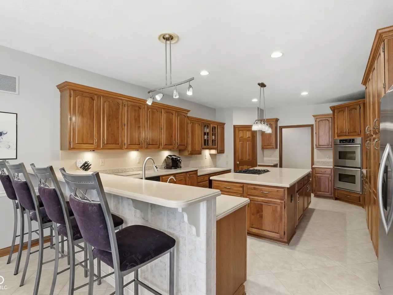 Welcome to this gracious and elegant retreat in one of Carmel's most desirable east-side neighborhoods. Perfectly positioned on a quiet cul-de-sac, this 5-bedroom, 5-full-bath residence offers refined living with exceptional functionality. Featuring a sophisticated living room, comfortable family room, and formal dining room, this home is ideal for anyone seeking generous space, comfort, and timeless style. Enjoy expansive main-level living with soaring ceilings and a chef's kitchen boasting abundant cabinetry, extensive counter space, and impressive storage throughout. Each room is thoughtfully designed to provide elegance, privacy, and ease of living - and every bedroom is paired with its own full bath. The spacious finished lower level includes a second kitchenette, large living area, bedrooms, and full baths - an ideal setup for guests, extended family, or private workspace. This home is equipped with a geo-thermal heating and cooling system, offering exceptional energy efficiency, year-round comfort, and lower utility costs. Located close to trails, parks, downtown Carmel, restaurants, and boutique shops, this property blends convenience with tranquility. With two complete levels of living, beautifully maintained and thoughtfully designed, it's truly two homes in one - offering flexibility, comfort, and enduring appeal.