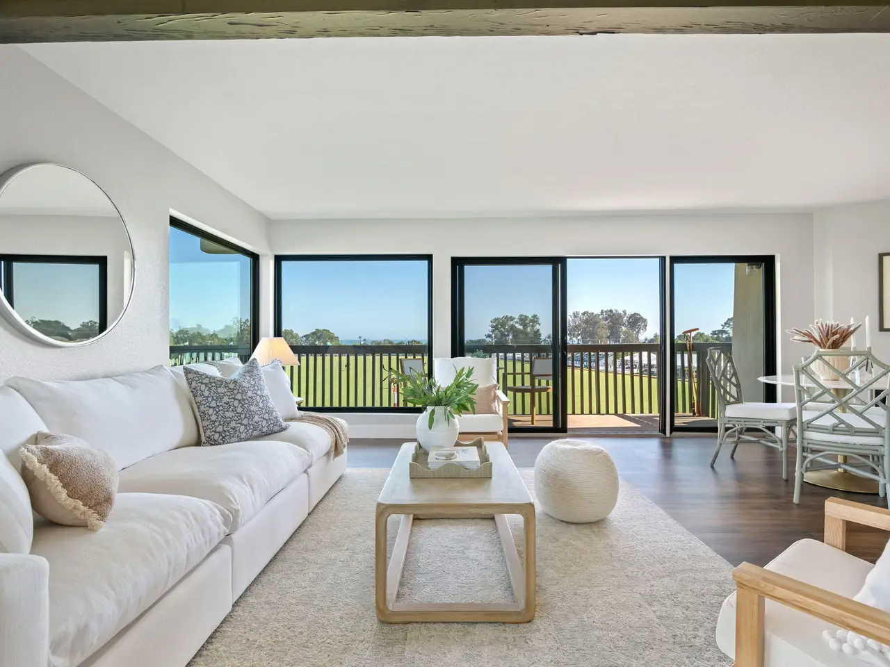 Exceptional opportunity to own a piece history. Never before on market, this coveted SB Polo Club founders' condo offers field-front living with stunning 270-degree wraparound views of mountains, polo fields, ocean and islands. Bathed in natural light, the home radiates an open and airy ambiance, complemented by a cozy gas fireplace. The kitchen features a convenient passthrough bar - perfect for entertaining while the primary bedroom includes a lovely sitting area and view balcony. Two additional bedrooms provide tranquil green space views. Experience the thrill of polo matches from the comfort of your own end-unit home - the ultimate front-row seat. Embrace resort-style living with access to a beautifully updated pool. Recently painted and updated with upgraded windows & flooring throughout.