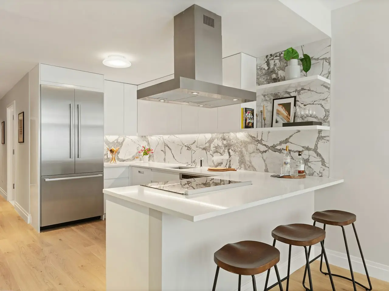 这套三卧两卫的顶层公寓位于 The Dovecote,拥有令人惊叹的私人屋顶,让您体验可持续的奢华,设计、功能和被动式住宅在这里完美融合。公寓可通过私人钥匙电梯进入,拥有高档的室内装修、超大隔音窗户、经典的白橡木地板和高效的 VRF HVAC 系统。这套绝佳住宅的亮点是令人惊叹的私人全屋顶露台。这个近 1,300 平方英尺的空间提供无限选择,让您放松、娱乐、户外用餐,甚至搭建屋顶花园。主卧套房外还设有一个禅意十足的阳台,更是锦上添花。住宅的核心部分包括一个厨师厨房,配备凯撒石台面、Porcelanosa 防溅板、定制烤漆橱柜和一套引人注目的博世不锈钢电器。循环热水系统提高了效率,减少了浪费。主浴室设计简洁,配备波斯白色Porcelanosa地砖、Carrera Blanco墙砖、定制烤漆盥洗台(搭配凯撒石台面)以及配备高仪卫浴的步入式淋浴间。次浴室则铺设了石灰华质感的瓷砖地砖、意大利釉面白色瓷砖墙砖,并配备了宽敞的浸泡浴缸和抛光镀铬的科勒卫浴。入住这套瑰宝般的顶层公寓,尽享The Dovecote无与伦比的可持续生活。 The Dovecote采用创新的被动式住宅设计和建造技术,旨在最大限度地节约能源,打造健康舒适的居住环境。这些升级包括加厚外墙保温材料、气密的建筑密封系统、高效的三层玻璃窗以及去除外墙导热材料。这种科技与匠心的融合不仅有助于环境可持续发展,还能通过稳定室内温度和减少对空调的依赖,为业主带来成本节约效益。 鸽舍将艺术与建筑天衣无缝地融合在一起,彰显了创造力的变革力量。其正面饰有一块雕刻着丽塔·多夫原创诗歌的石板、埃米特·威格斯沃思创作的场地马赛克以及肯特·布卢默设计的装饰面板。 Dovecote 提供精简日常生活的基本设施,并通过现代化的便利设施提升住户的生活质量。精品健身工作室配备顶级健身器材,虚拟门卫确保安全出入,并设有安全的包裹寄存室,方便快捷地递送包裹。私人存储选项可满足各种组织需求。 独家销售和营销代理:Brown Harris Stevens Development Marketing。完整的发售条款可在赞助商提供的发售计划中找到。文件编号:CD16-0401。赞助商:11 West 126th Street Holdings LLC,地址:90-11 160th Street, Jamaica, N.Y. 11432。物业地址:11 West 126th Street, New York, New York 10017。平等住房机会
