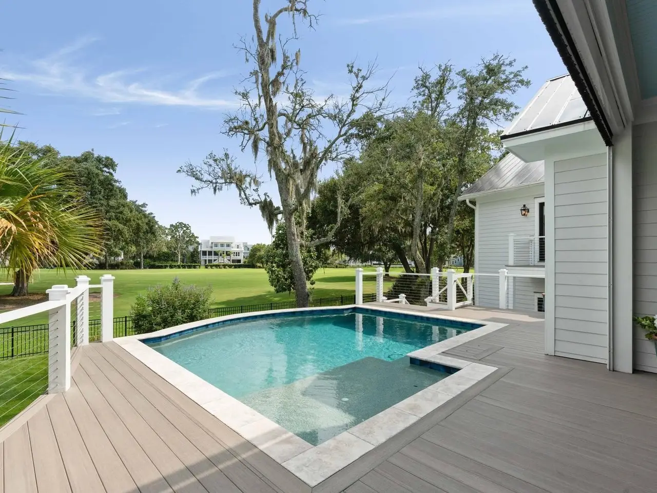 Rare true six bed, 6.5 bath Parkside home with FULL GOLF attached. Enjoy spectacular Daniel Island golf course views from multilevel porches and the elevated pool. The home has newly refreshed high-design touches throughout. Quality and craftsmanship are at the forefront with Wolf and Sub-zero appliances in the gourmet chef's kitchen and butler's area with walk-in pantry. A luxurious first floor master suite leaves you with endless areas for relaxation including a large custom closet and soaking tub in the marble bath. Upstairs you will be wowed with a huge media room flowing to a rear porch and three en-suite bedrooms while laundry is a breeze with two laundry spaces (up and down). Venture to the third floor space/suite or descend to the large detached in-law residence. The home lives both intimately and LARGE. You will be in awe of the entertaining space and elevated pool off the living room with large concept open flow NANO door that brings the outside in - auto screens and a porch fireplace keep everything comfortable through all seasons. Do not miss a moment of luxury coastal living in one of the most spectacular locations in Charleston.