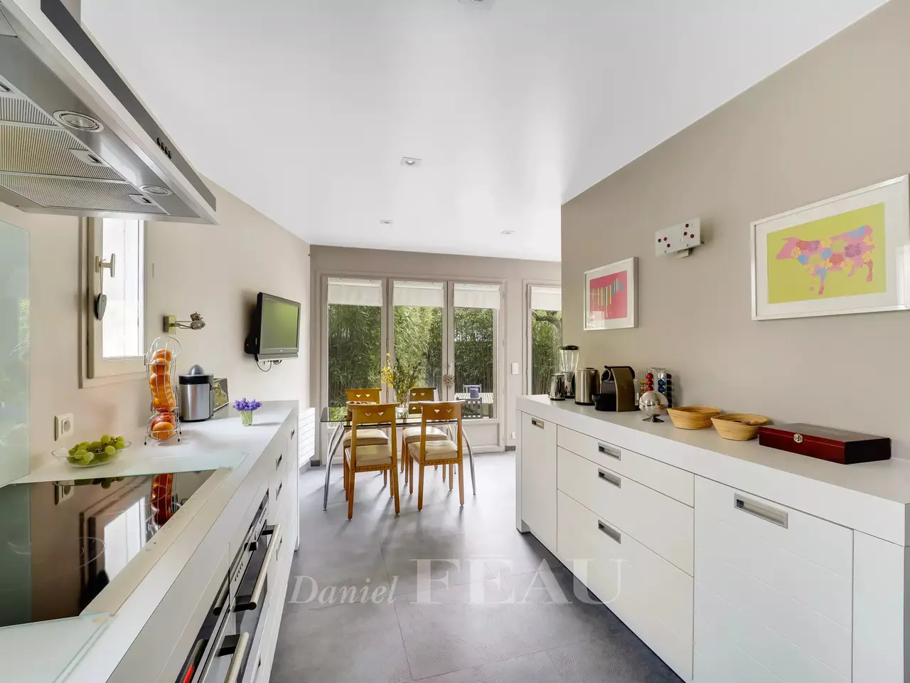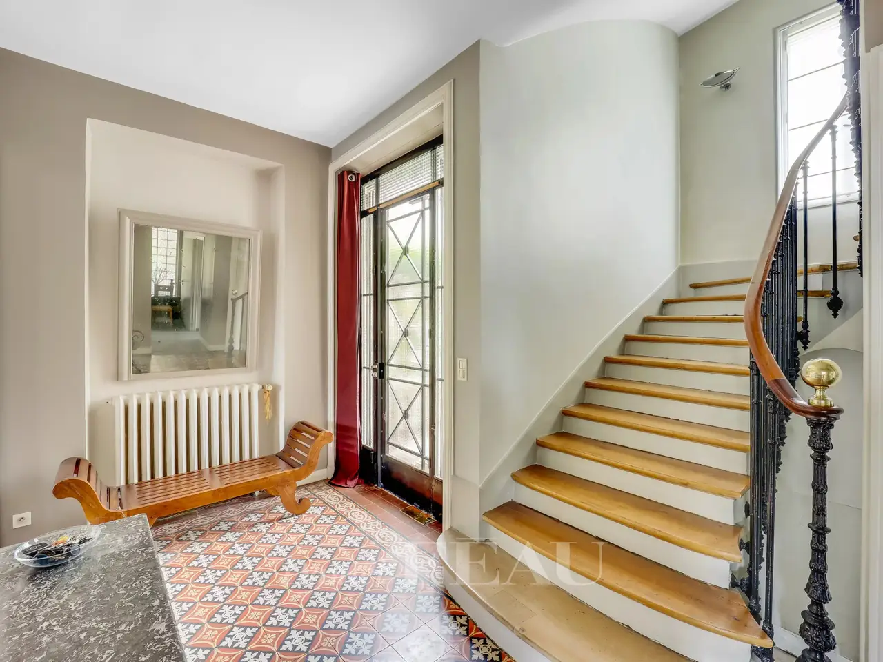 This near 260 sqm early 20th century property set in a peaceful 700 sqm plot is located a stone’s throw from the station and the shops. It includes a spacious entry featuring period floor tiles, a spacious living/reception room and dining room accessing the garden and featuring parquet flooring, mouldings and fireplaces, a kitchen with patio windows accessing a stone-decked terrace and the garden, and a guest wc. Upstairs a wide landing fitted as a sitting room/library leads to a master suite with a bathroom, and a bedroom or study. The top floor comprises three further bedrooms (one very spacious), a bathroom and a wc. Accessed from the kitchen, the entresol has been fitted as a spacious studio apartment with a shower room. With a vaulted cellar and a boiler room. 2 parking spaces. A 2 and 10 minute walk respectively from the station and several schools ((Le Bon Sauveur, Paul Bert, Perceval), and with a bus link accessing the British School of Paris and the Lycée International de Saint-Germain-en-Laye in 40 minutes.