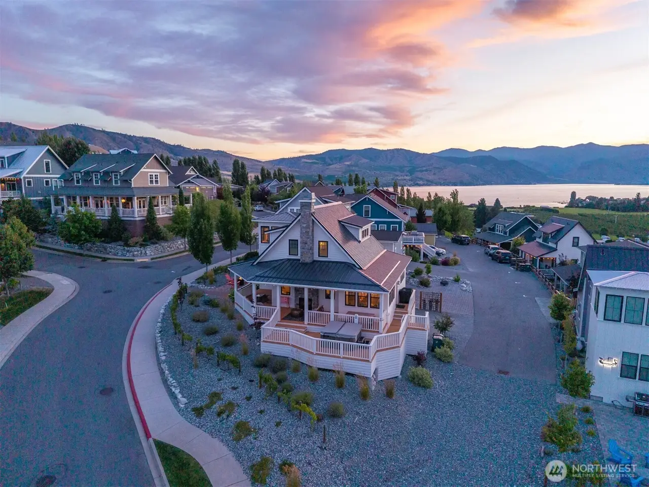 Terrific turnkey fully furnished modern farmhouse at The Lookout on a corner lot w/ stunning uplake views. This spacious 3bd, 1.75bth, 1,453sf home features an open floor plan & incredible outdoor living areas via the classic wraparound covered porch, outdoor BBQ & lounge area w/ cafe lights, fire pit w/ Adirondack chairs plus private hot tub, all just steps from the year-round Vineyard District Pool. Main level w/ Primary Bedroom, spacious kitchen, a 10-person dining area & light-filled living room w/ 2-sided fireplace. Upper level w/ king bedroom, bathroom & a bunk room that sleeps 5. The Lookout offers community waterfront, marina, parks, pools, sports courts & more! Exceptional, consistent VACATION HOME RENTAL with on-site management.
