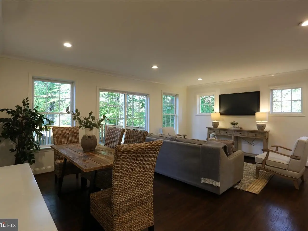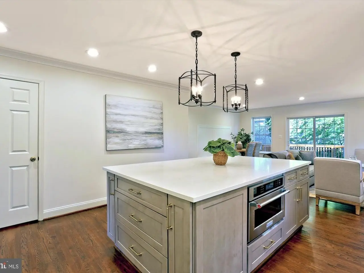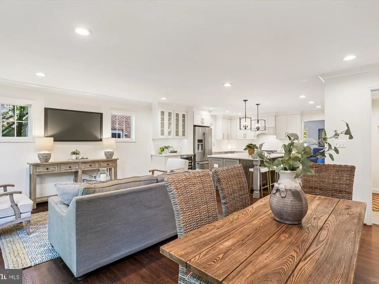 OPEN SUNDAY 1-3pm. Tucked along a picturesque, tree-lined street in one of Chevy Chase's most desirable and walkable neighborhoods, this charming Colonial perfectly blends timeless character with modern comfort. Thoughtfully renovated and expanded in 2019, the home offers five bedrooms and four full baths, including a main-level bedroom suite and a beautifully landscaped, fully fenced rear yard. A welcoming foyer and living room set the tone with abundant natural light from three walls of windows and a classic wood-burning fireplace. The heart of the home is the chef's kitchen, showcasing quartz countertops, custom cabinetry, and premium appliances-KitchenAid French-door refrigerator, gas range with griddle, Bosch Emerald Pro dishwasher, and Azure wine fridge. A large island with ample seating, connects seamlessly to the family room addition which has a custom built-in banquette, while sliding doors open to a deck ideal for outdoor dining and relaxation. Entry from the attached one-car garage leads to a mudroom with cubbies, providing everyday convenience and organization. Privately tucked away, the main-level bedroom suite with beautifully renovated bath is perfect for guests, an office, or multigenerational living. Upstairs, the generously sized primary suite offers a spa-inspired bath, walk-in closet with custom shelving, and views of the backyard. Three additional bedrooms include one with an en-suite bath and two sharing a hall bath. The lower level features a cozy recreation room with fireplace and built-ins, laundry, and generous storage space. Outdoor upgrades include a deck (2019), brick patio and front steps by Capitol Hardscapes (2020), and a new garage door (2024). Moments from Chevy Chase Lake, the Purple Line, Rock Creek Park, and the North Chevy Chase Swim Club, this exceptional home delivers modern updates, classic design, and a beloved neighborhood setting.