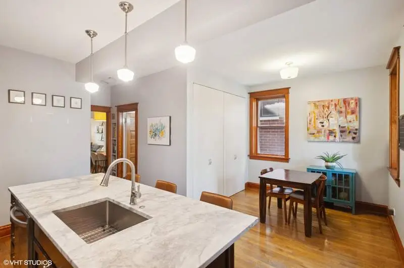 Sitting on an oversized lot, this gorgeous brick single-family home on a pretty tree-lined street is just a stone's throw to Lincoln Square and offers an ideal blend of classic Chicago charm and modern convenience. This intelligently converted and redesigned two-flat to single family, provides exceptional space with 4 bedrooms, and 3 full bathrooms, including a beautiful primary suite. Throughout the home, you'll appreciate the restored vintage millwork that adds character and warmth to every room. The main level welcomes you into the charming living room that opens to the formal dining room, complemented by a beautifully updated eat-in kitchen with Quartzite stone counters. This floor also provides a guest bedroom and full bathroom. Upstairs offers the most incredible space boasting 3 bedrooms, 2 full baths plus TWO additional rooms that can be used as living/family/office, etc. You have a generous primary suite with attached bathroom, and an organized walk-in closet with vintage pocket doors. The clean, unfinished basement houses the washer and dryer while offering excellent storage potential, or additional build out opportunity. Outside, enjoy the large backyard with patio space and the convenience of a two-car garage. Location is everything with this property, plus easy access to the EL & Metra. Enjoy all that Lincoln Square has to offer including boutique shops and notable restaurants. Sprawling 22 acres is Winnemac Park offering a prairie garden/nature trail, playground, trails, softball fields, soccer field, track, gym & more. Residents will appreciate the Sacred Heart bus pickup just two blocks away and proximity to so many additional coveted schools including Lycee, Montessori, Waldorf, German International School, Waldorf, Gardner School and North Park Elementary.