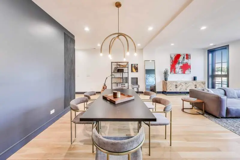 Newly built 4-bedroom, 3-bathroom penthouse triplex offering over 3,300 sq ft of stunning luxury living space in the heart of Roscoe Village! Designed by Karisus Design, this home showcases 9.5' ceilings, wide-plank oak hardwood floors, and four private outdoor spaces across three levels. Main level boasts expansive open floor plan with custom fireplace wall, floor-to-ceiling windows, and access to a private terrace. Dining area with designer lighting and built-in bar flows seamlessly into the chef's kitchen featuring THERMADOR WiFi appliances, double ovens, pro range, quartz island with seating, integrated coffee machine, and breakfast nook. Fourth bedroom/office completes this level. 4th floor primary suite with walk-in closet, spa-quality bath with heated floors, soaking tub, glass shower, Kohler Purist fixtures, and a 400 sq ft private balcony. Two additional bedrooms, sleek full bath, laundry closet, and lounge with mini bar and terrace access. Private staircase leads to a full rooftop deck with 360 city views, pergola, and lounge seating-perfect for entertaining. Solid masonry construction, custom accent walls, designer lighting, fully built-out closets, and porcelain-tiled baths. Steps to Le Sud, Volo, Lush Wine Bar, Turquoise, and Piazza Bella. Unbeatable location steps to Hamlin Park, Clark Park Boathouse, 312 RiverRun, and the Brown Line for easy commuting. Every detail has been curated for comfort, style, and elevated city living!