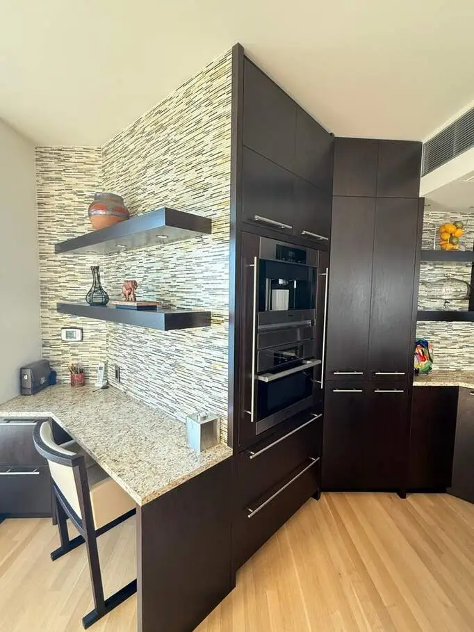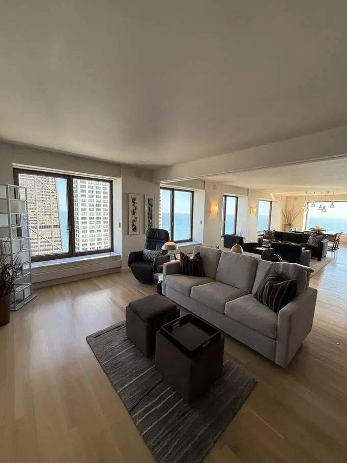 A home in the sky with sweeping city & lake views! Perched high on the 53rd floor, this stunning corner residence is truly a home in the sky. With the coveted **A-tier-the largest floor plan in the building-**you'll enjoy dramatic wall of windows with floor-to-ceiling views stretching from Navy Pier across Lake Michigan to the glittering Chicago skyline. Recently reimagined with a sleek, open-concept design, the luxurious kitchen is the centerpiece of the home. Start your mornings with an espresso from the built -in Miele cafe station, cook with a view from your Wolf induction cooktop and unwind with a bottle from the full-height wine fridge. The show-stopping extra-long, two-tiered stone island is perfect for entertaining while taking in the breathtaking views stretching as far as the eye can see!!! The primary suite basks in the glow of sunrises and sunsets over Navy Pier. Experience true luxury in this expansive master suite, designed to impress with unmatched comfort and sophistication. Featuring 2 newly rehabbed en-suite bathrooms adorned with timeless marble tile finishes, white oak vanities, a giant soaker tub and walk in shower. This retreat offers the ultimate in privacy and elegance. The suite boasts two spacious walk-in closets, providing abundant storage and organization, along with a dedicated sitting room that frames breathtaking views of Navy Pier and Lake Michigan. The versatile third bedroom is designed with flexibility in mind, featuring a custom retractable wall that seamlessly tucks away for open entertaining or closes to create a private retreat. A built-in entertainment center enhances the space, perfect for hosting or relaxing. A custom doorway leads directly to the hall bath, while Lutron lighting throughout adds a modern touch. All doorways have been thoughtfully redone to accommodate taller, more dramatic doors, elevating the home's sense of scale and style. Enjoy the well-appointed laundry room with Electrolux full size side-by-side washer/dryer, and a stylish powder room appointed with marble tiles, floating vanity with a Kohler sink. The Olympia Center embodies luxury life style experience with 24-hour door staff, indoor pool, whirlpool, sauna, steam room, party room, and on-site management. Parking is available for lease in the attached heated garage. Living here is a life style to love!